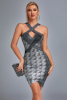Fleepmart High Quality 2024 Black Gold Sleeveless Foiling Print Rayon Bandage Dress Fashion Club Party Dress Vestidos