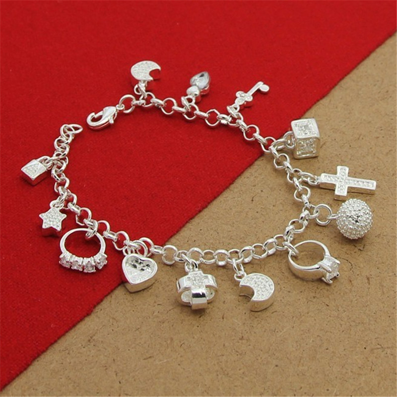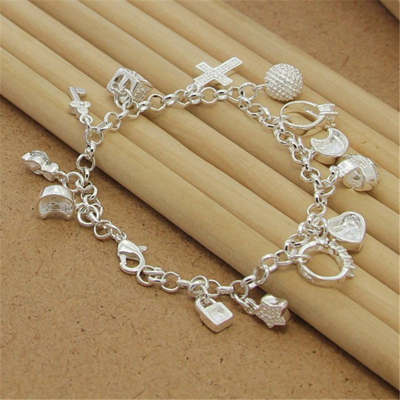 Fleepmart High Quality 925 Sterling Silver Bracelet With Multiple Pendant Zircon Bracelets For Women'S Party Charm Jewelry Gift