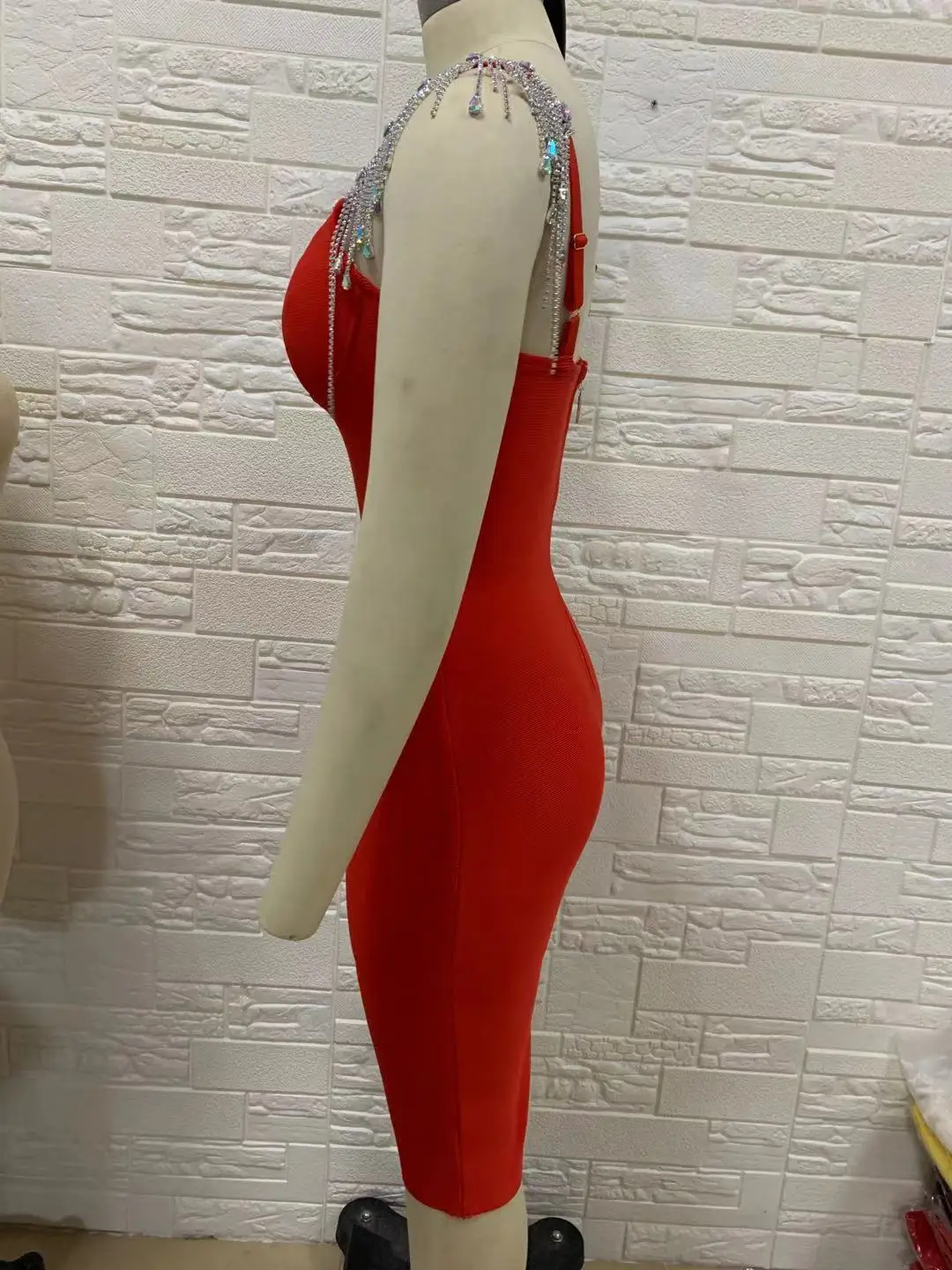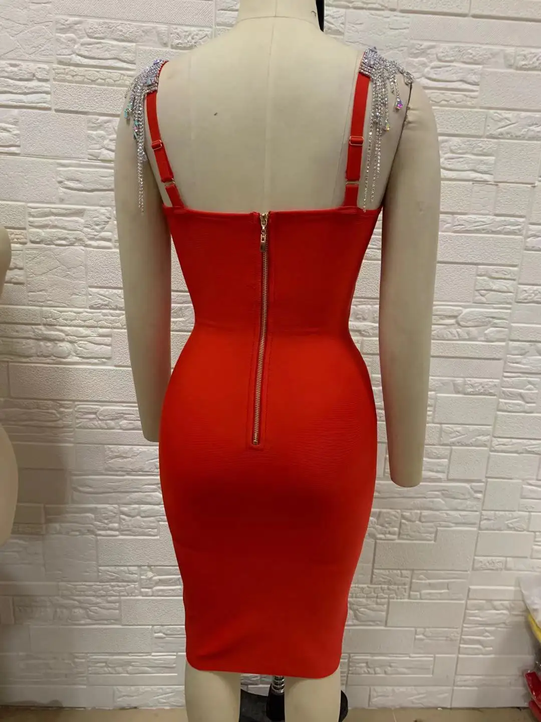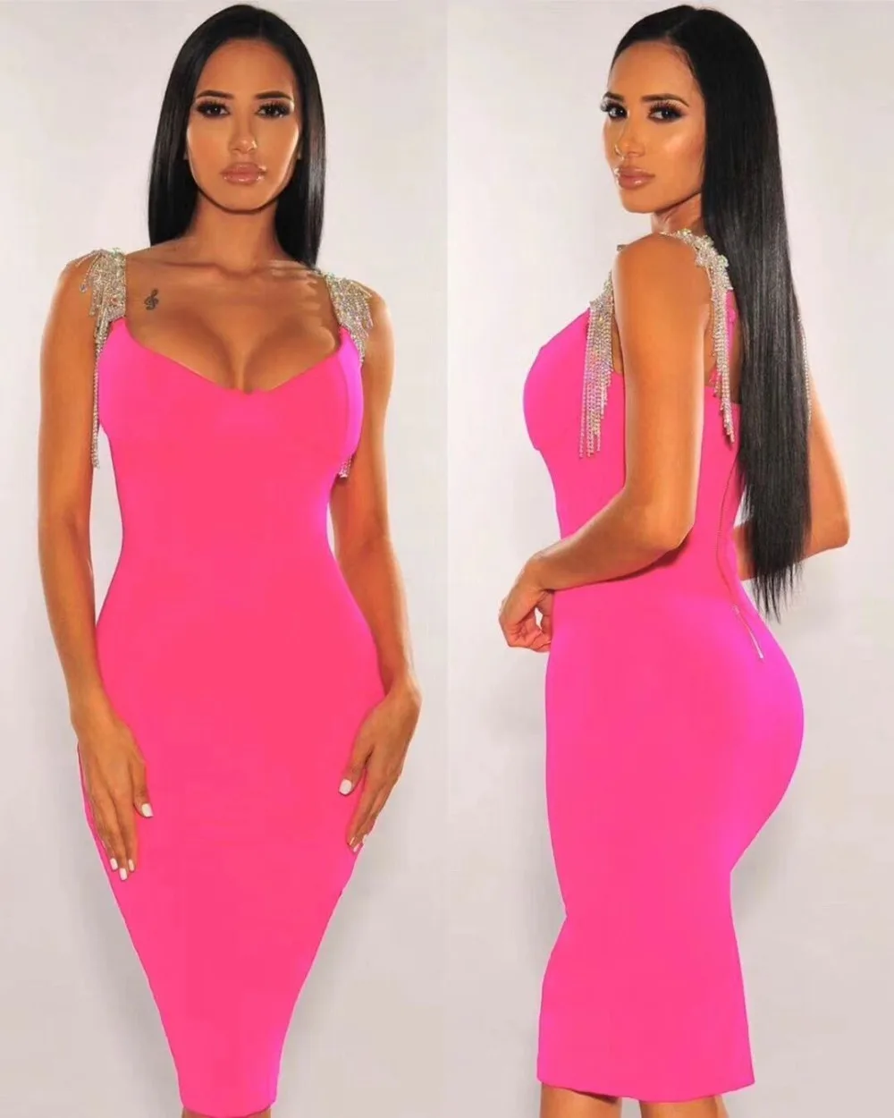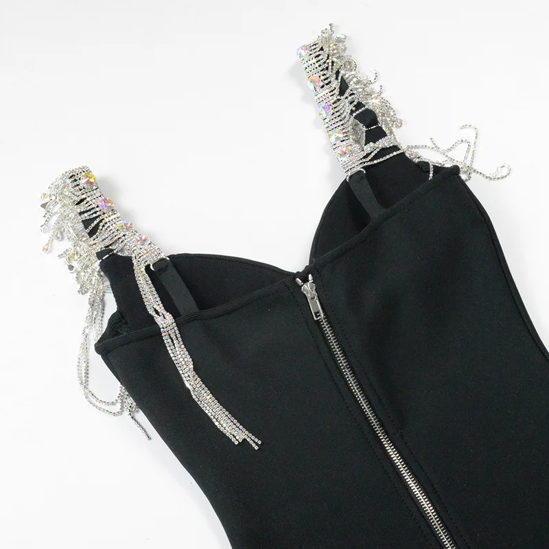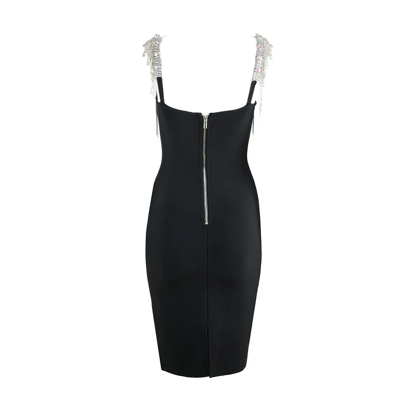 Fleepmart High Quality Black Pink Tassel Sparkly Slip Rayon Bandage Dress Elegant Cocktail Party Dress Vestidos