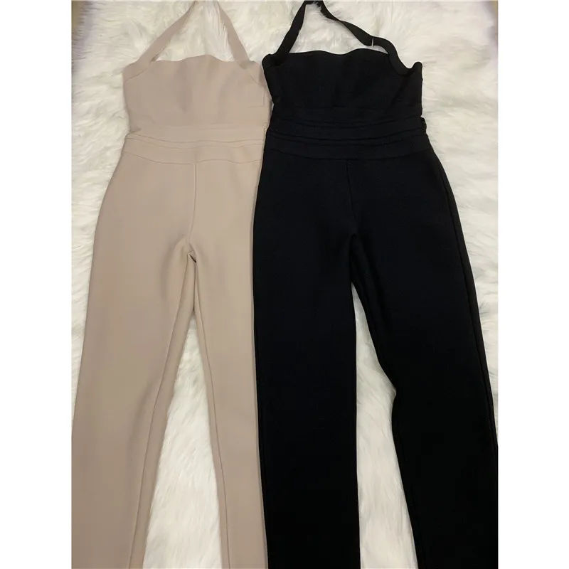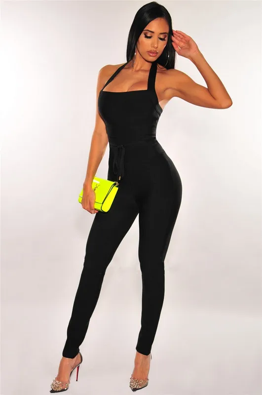 Fleepmart High Quality Black Women Turtleneck Neck Rayon Bandage Jumpsuit Sexy Bodycon Celebrity Party Jumpsuits Vestidos