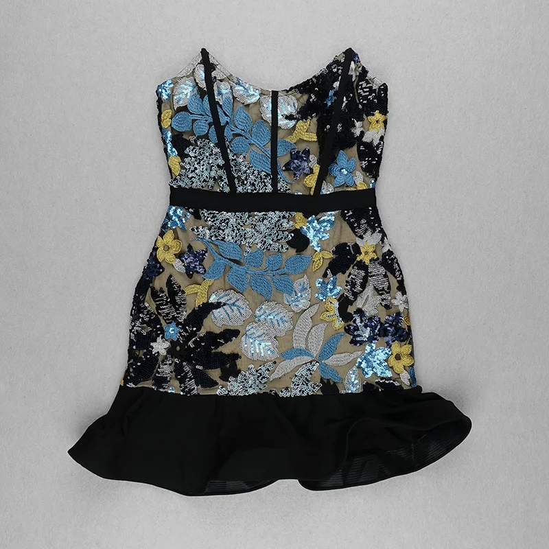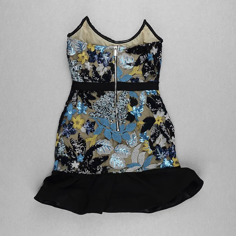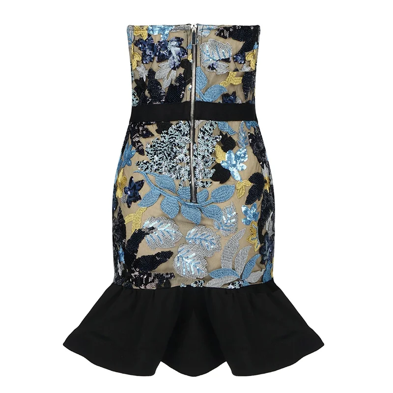 Fleepmart High Quality Celebrity Blue Print Strapless Pencil Bandage Dress Elegant Club Party Dress Vestidos