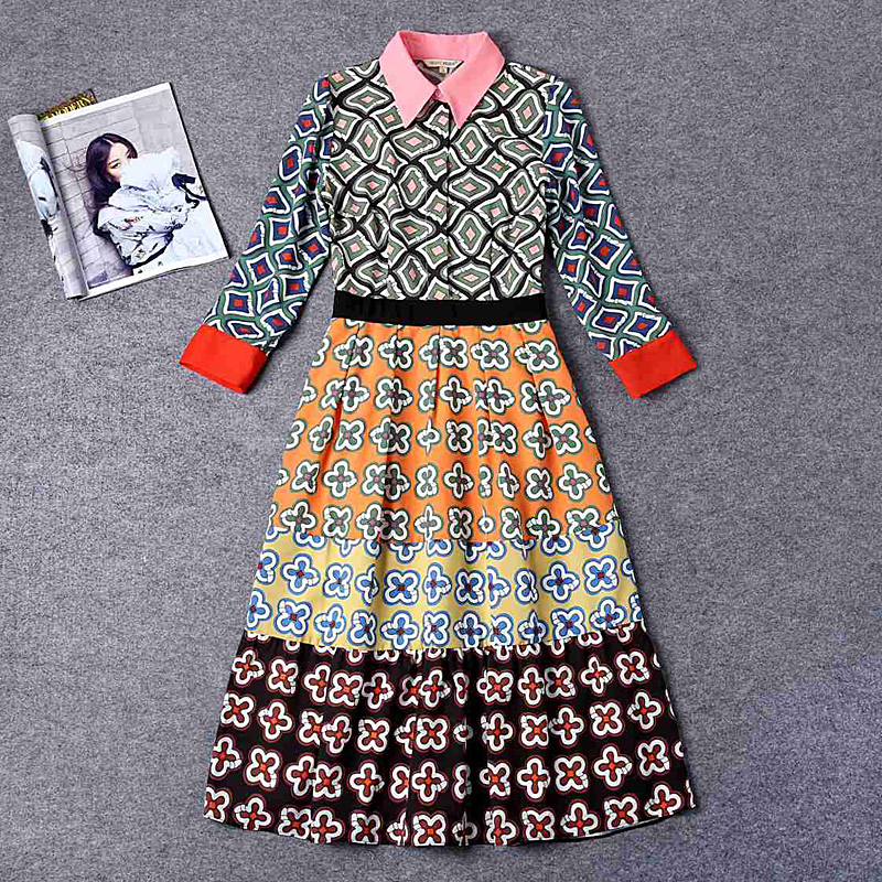 Fleepmart High quality designer Milan runway 2022 spring women's office party beach casual fashion vintage printed long sleeves dress