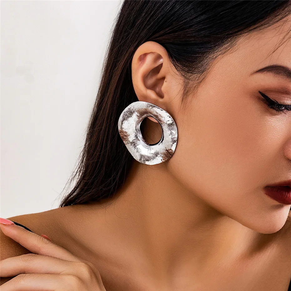 Fleepmart High Quality Exaggerated Large Circle Stud Earring Women Trendy Goth Geometric Piercing Earrings Jewelry Accessories Steampunk