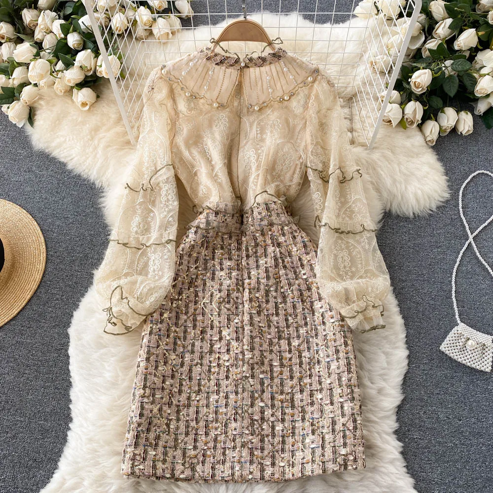 Fleepmart High Quality French Beading Tulle Dress Women Elegant Fashion Sweet A-line Party Dresses New Spring Streetwear Short Dress