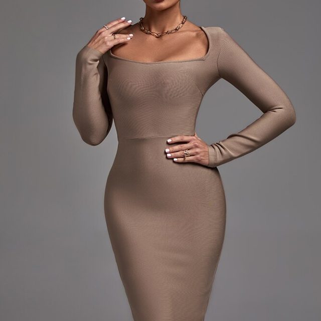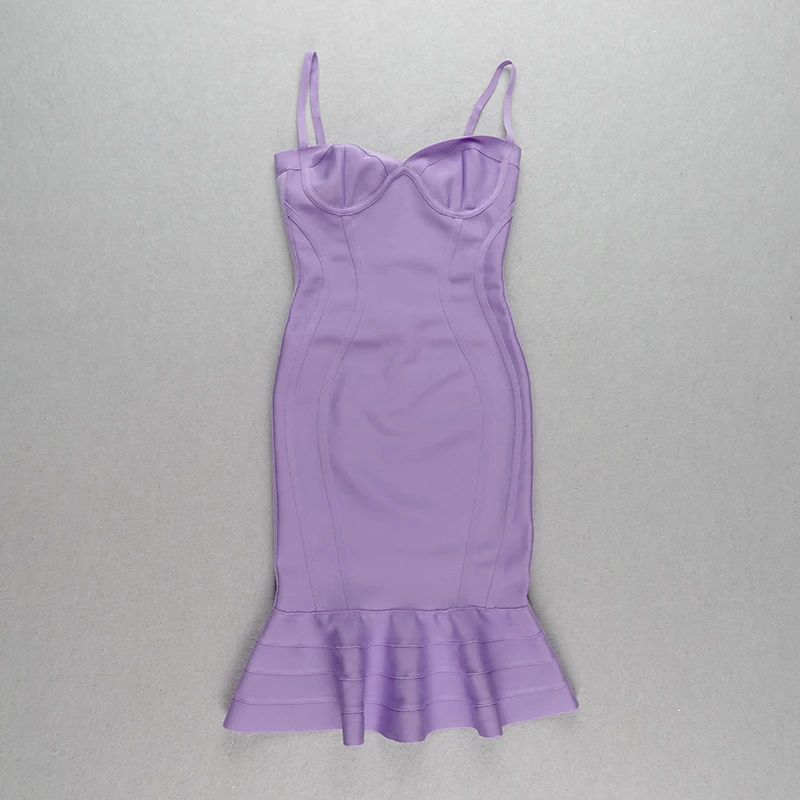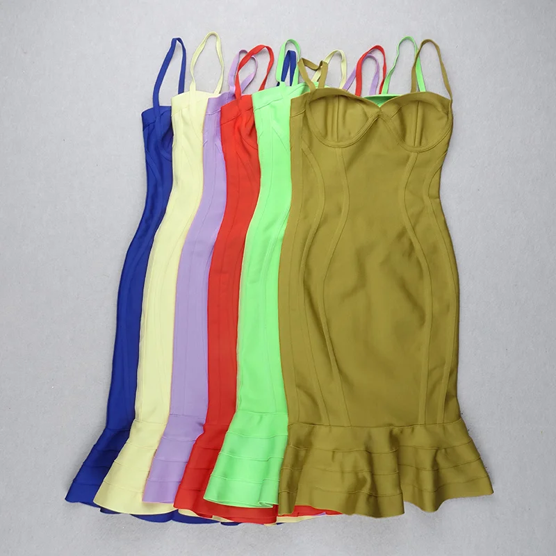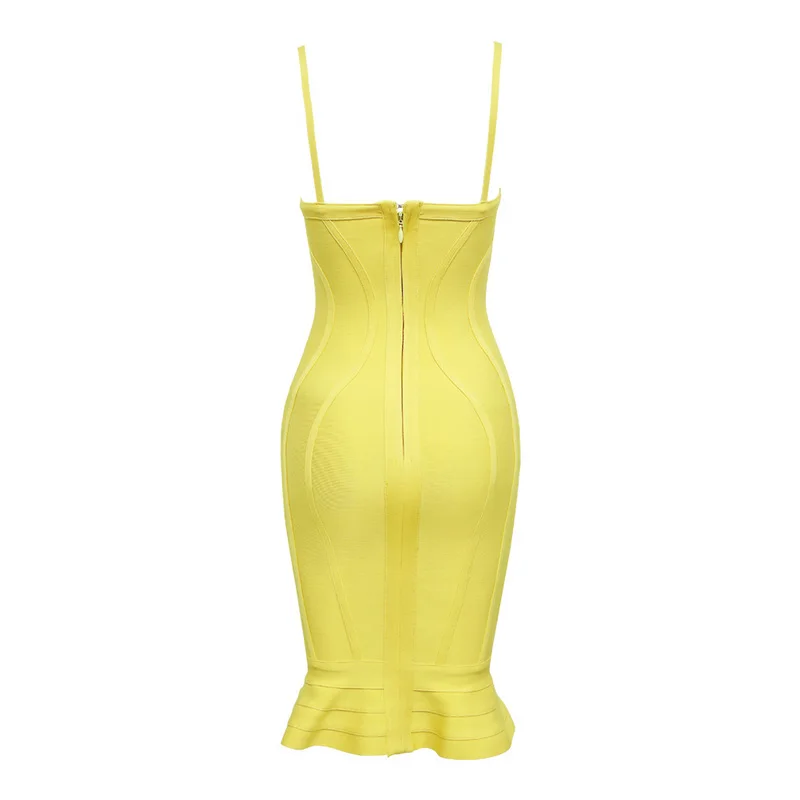 Fleepmart High Quality Pink Yellow Knee Length Rayon Bandage Dress Evening Party Elegant Dress