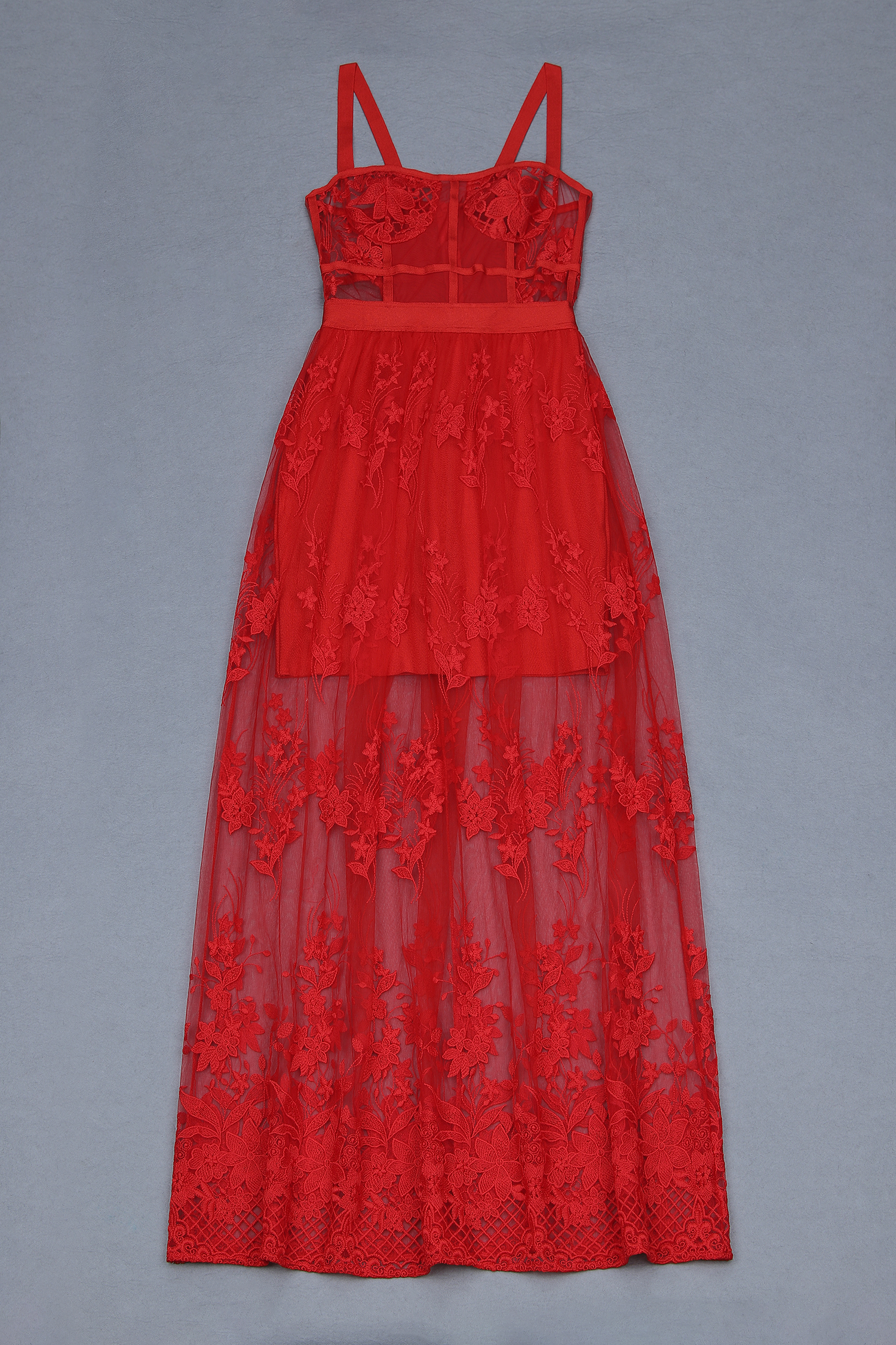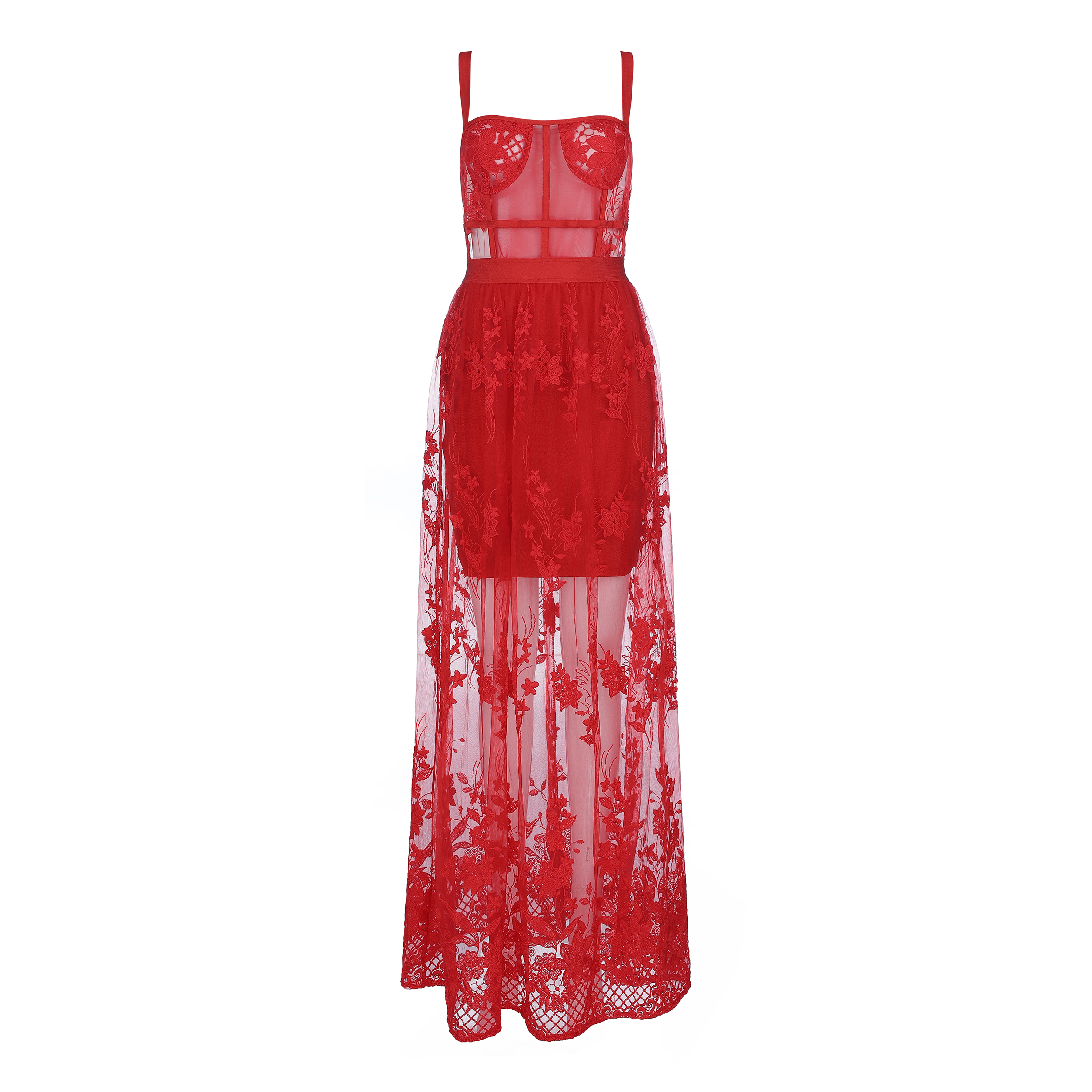 Fleepmart High Quality Red Slip Hollow Out Long Rayon Bandage Dress Evening Party Dress