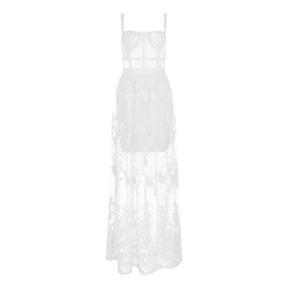 Fleepmart High Quality Red Slip Hollow Out Long Rayon Bandage Dress Evening Party Dress