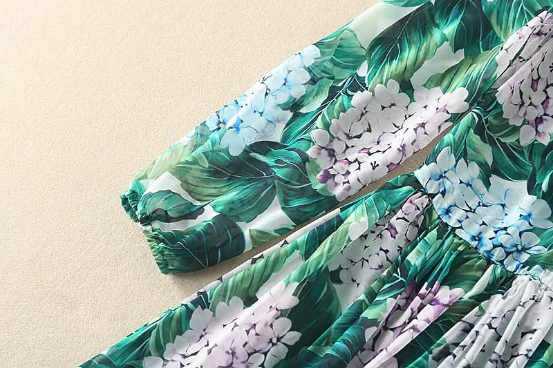 Fleepmart High Quality Runway Summer New Women’S Long Sleeved Maxi Bohemian Beach Sunscreen Holiday Holiday Printed Chiffon Long Dress