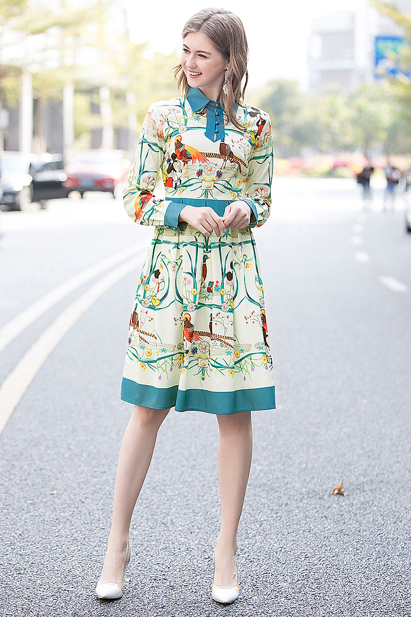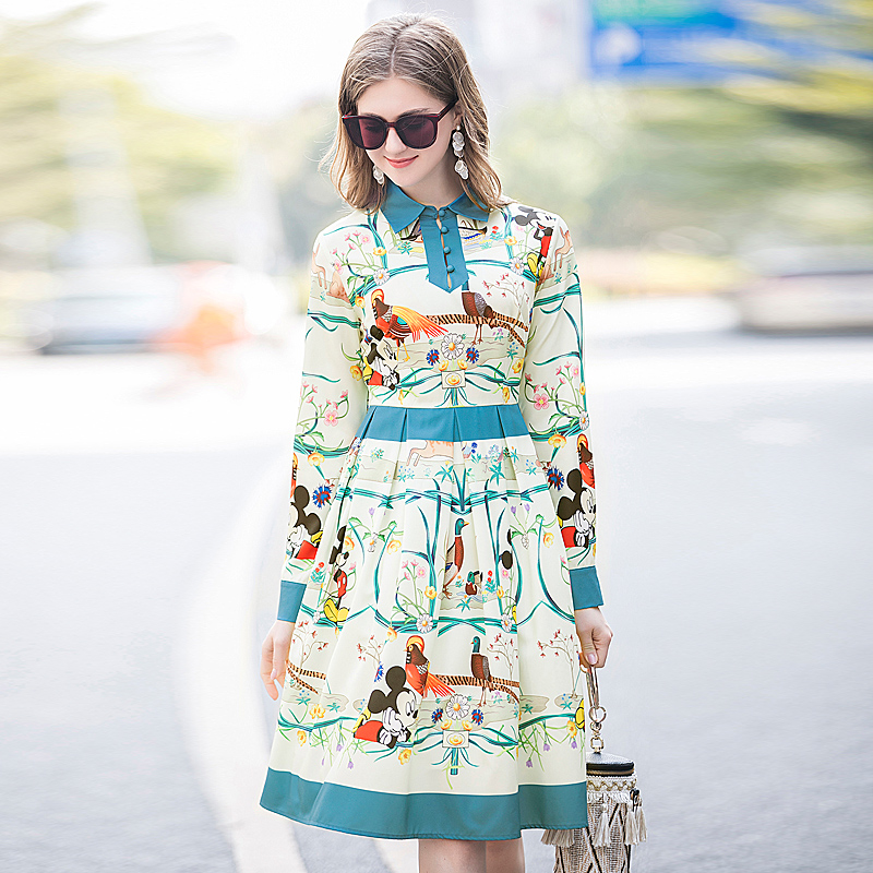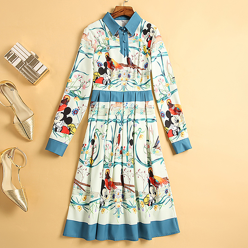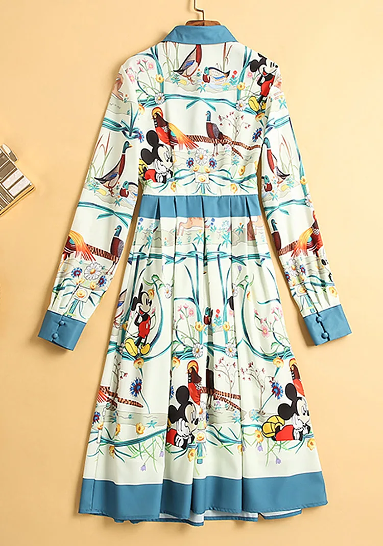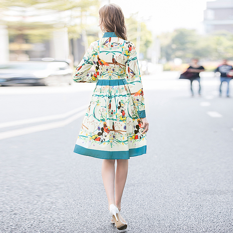 Fleepmart High Quality Spring New Women'S Party Casual Workplace Cartoon Print Stitching Elegant Chic Fashion Shirt Long Sleeve Dress