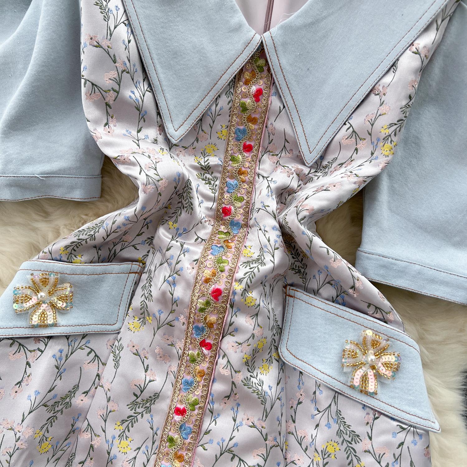 Fleepmart High Quality Summer Women Fashion Runway A-Line Dress Short Sleeve Bead Gorgeous Embroidery Elegant Ladies Mini Vestidos