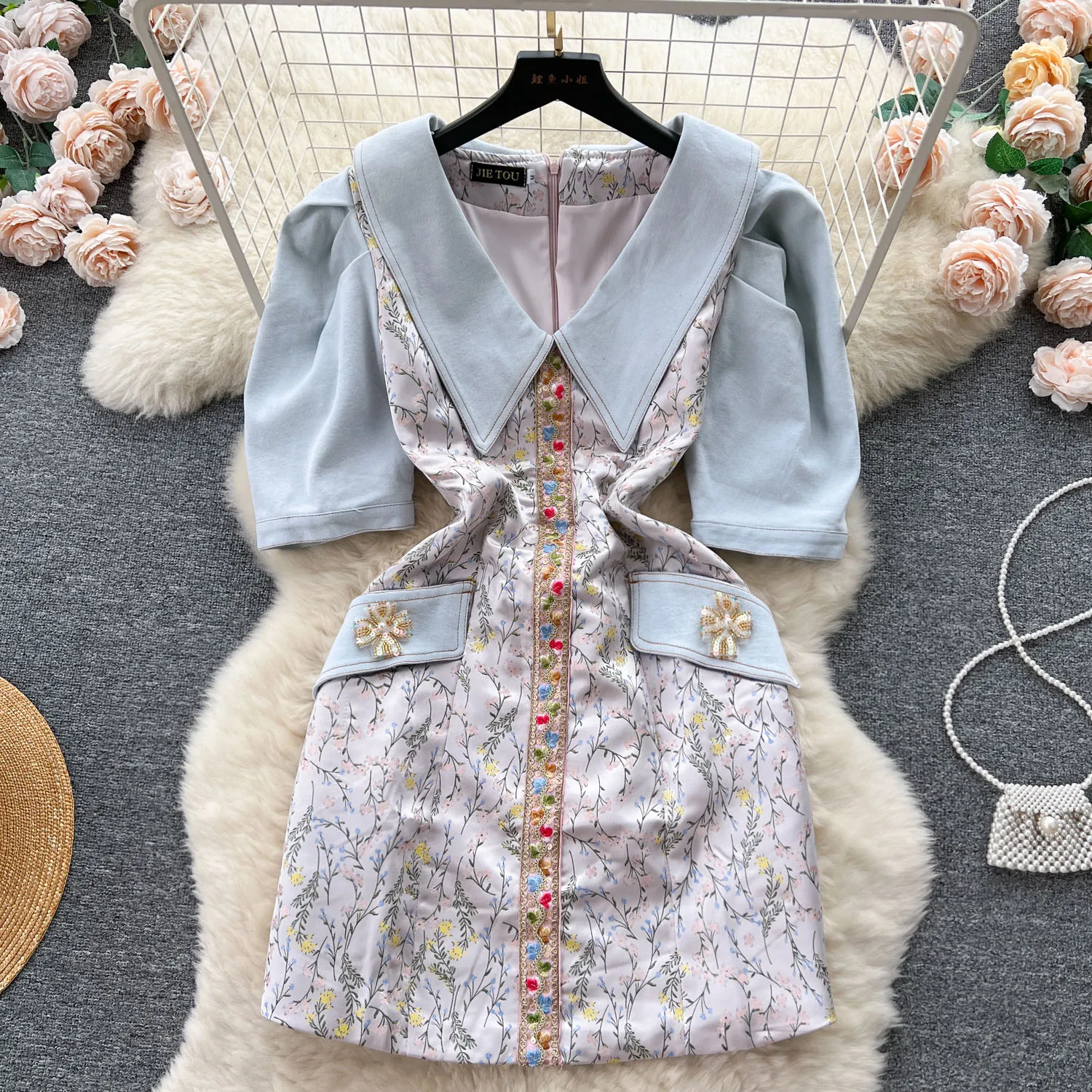 Fleepmart High Quality Summer Women Fashion Runway A-Line Dress Short Sleeve Bead Gorgeous Embroidery Elegant Ladies Mini Vestidos