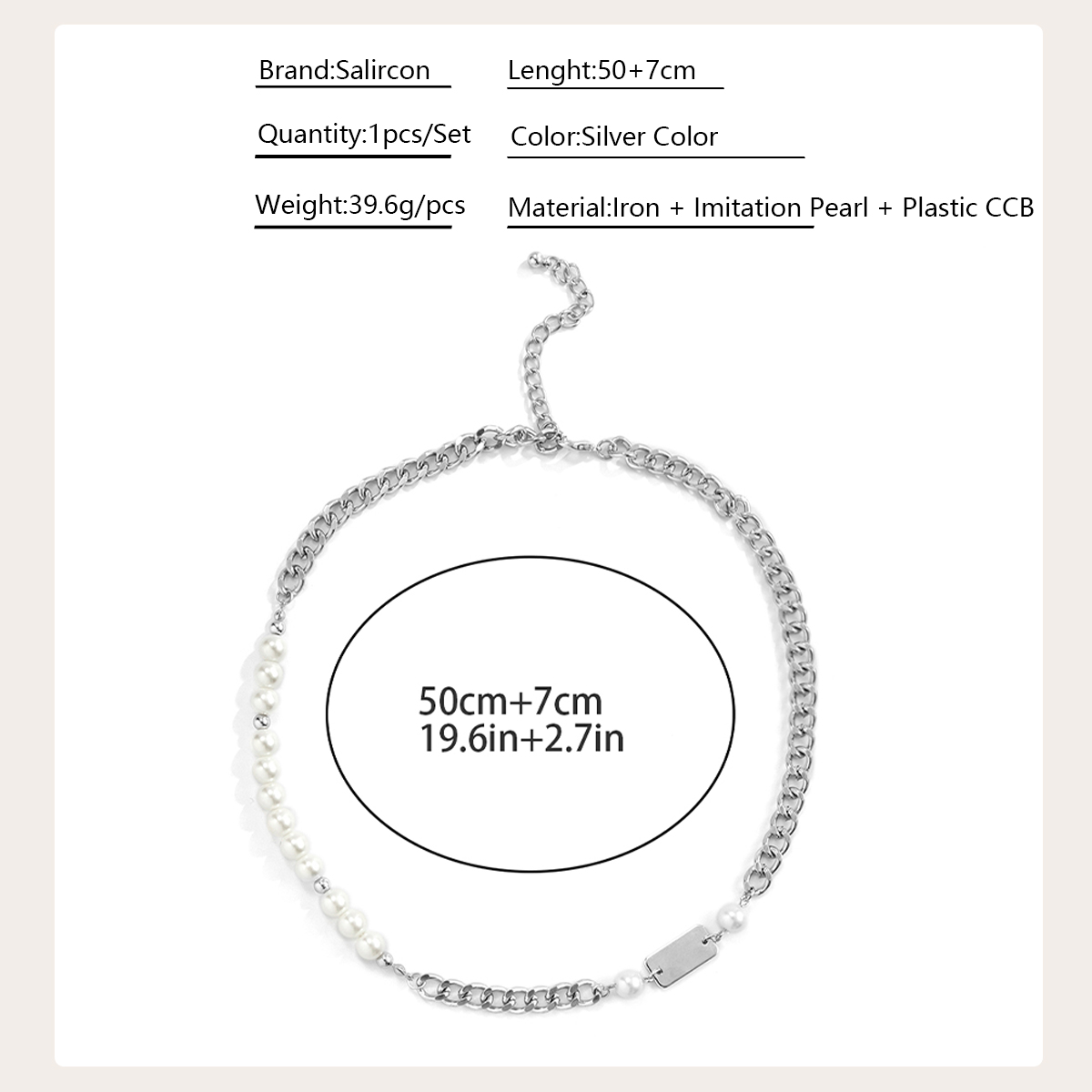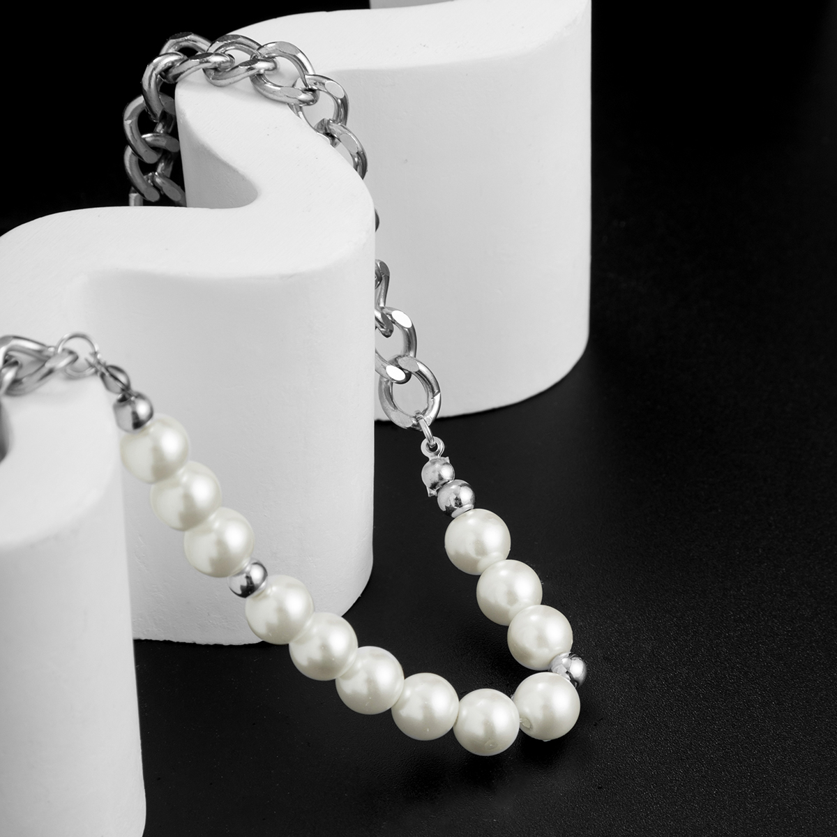 Fleepmart Hip Hop Asymmetric Curb Cuban Link Chain Necklace For Men Classic Imitation Pearl Beaded Collar High Quality Neo-gothic JewelryThere are no reviews yet