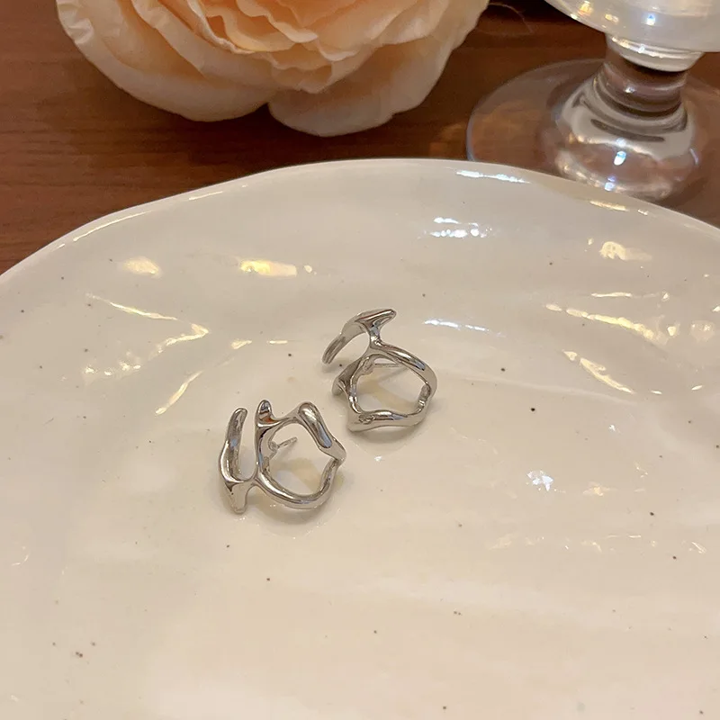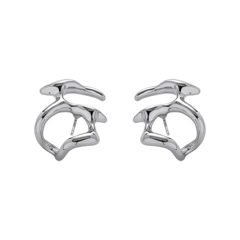 Fleepmart Hip-Hop Punk Silver Color Irregular Liquid Metal Stud Earrings For Women Fashion Party Jewelry Accessories
