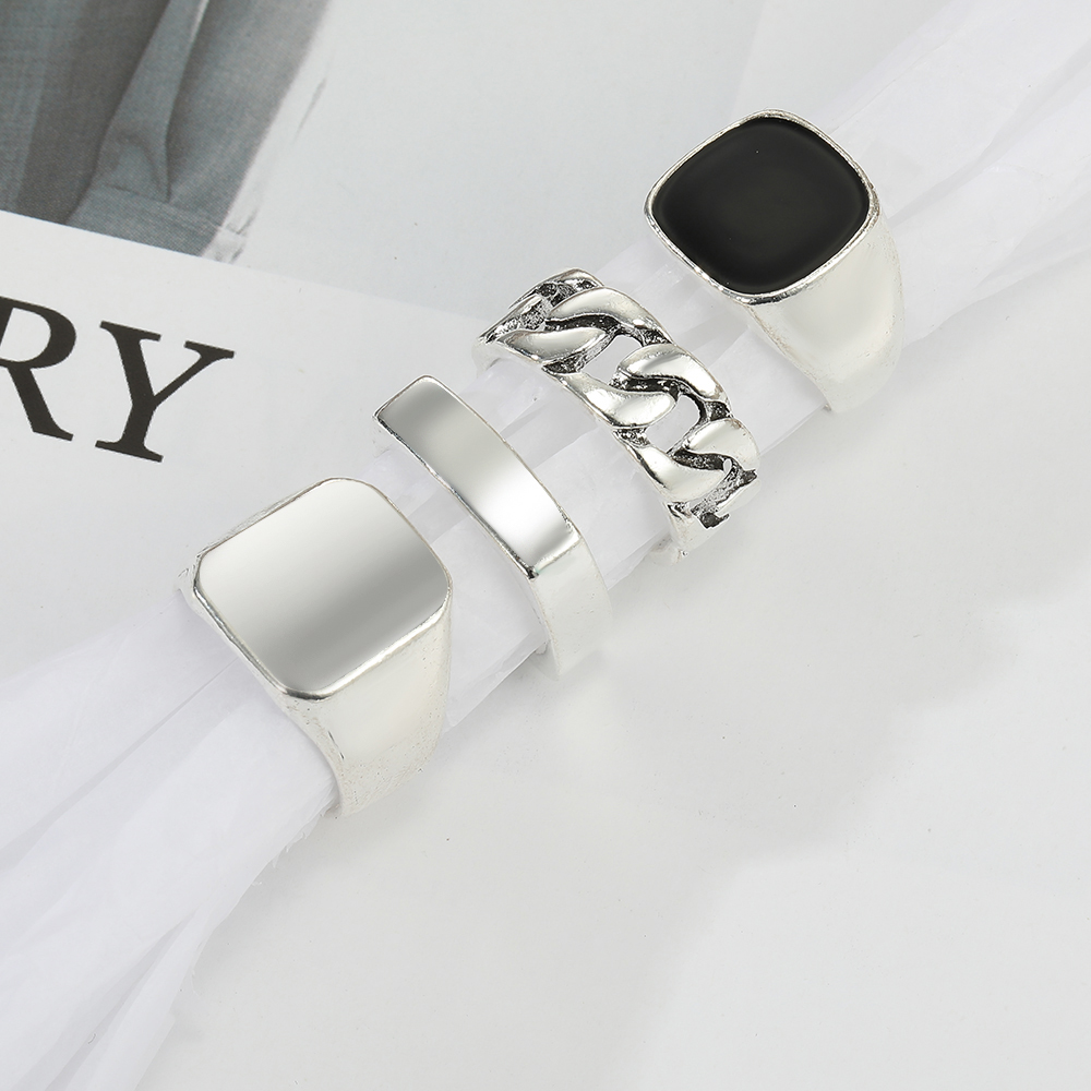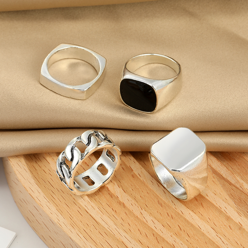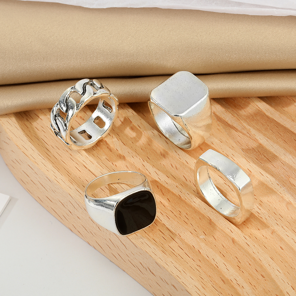 Fleepmart Hiphop/Rock Silver Plated Geometric Ring Set for Men Women Street Trend Metal Finger Rings Fashion Punk Jewelry Gifts