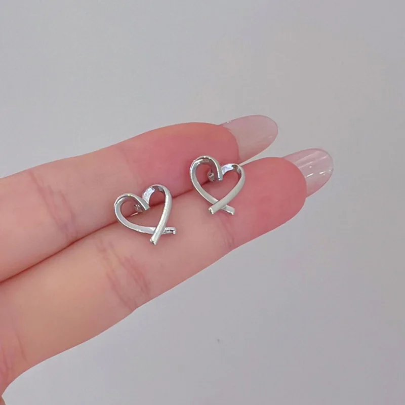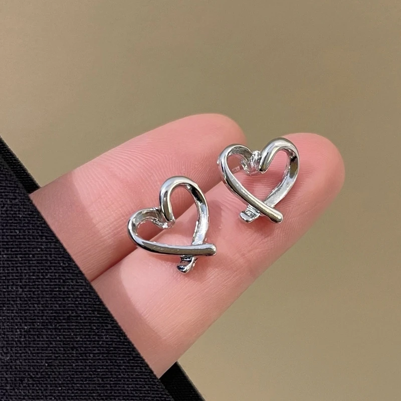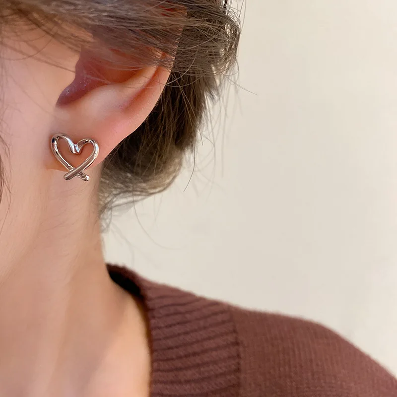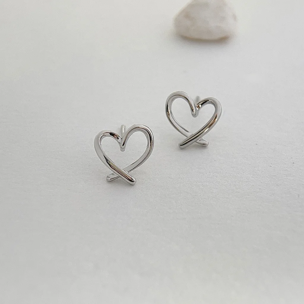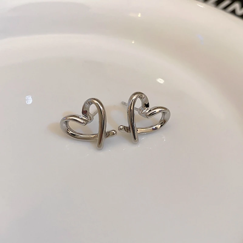 Fleepmart Hollow Heart Stud Women Exaggerate Geometric Silver Color Metal Jewelry Girl Gift Earring