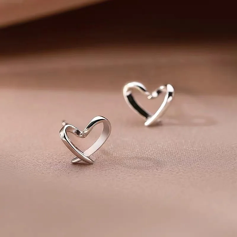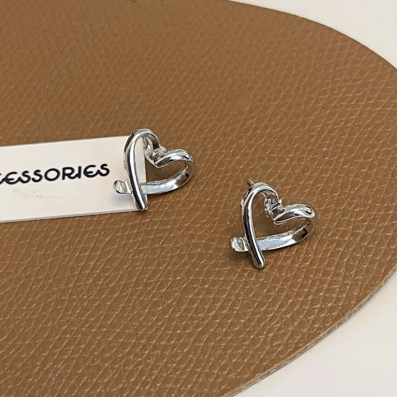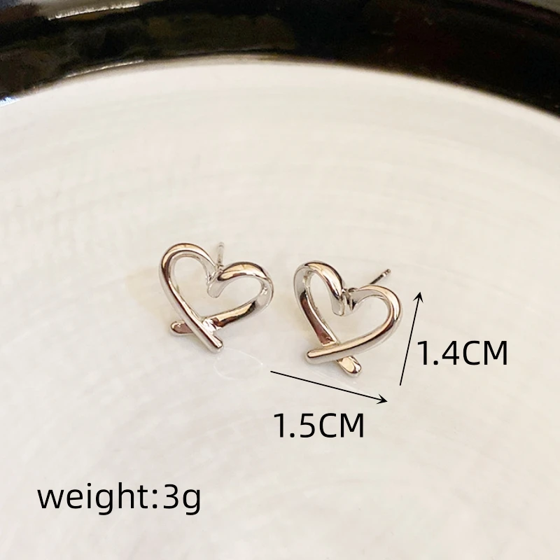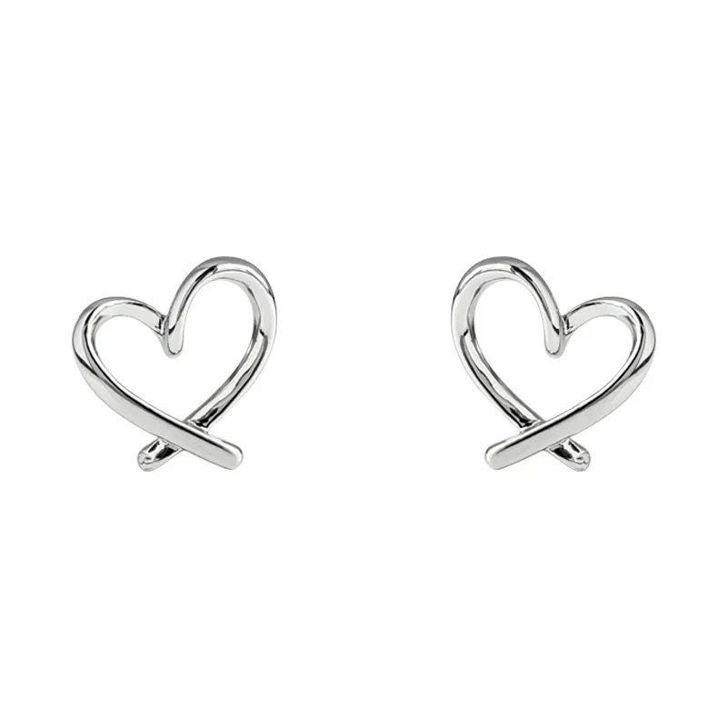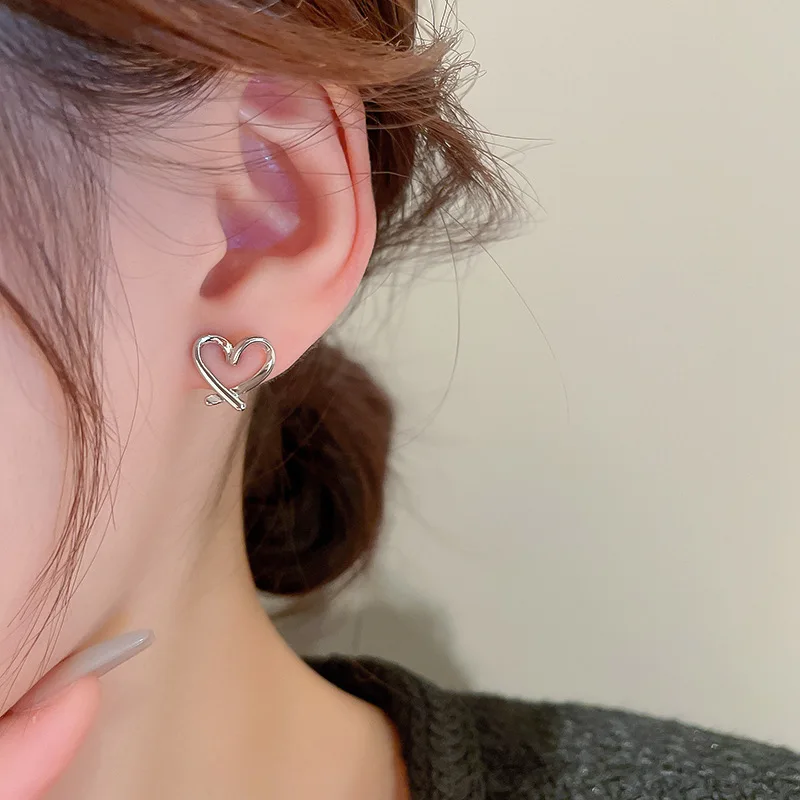 Fleepmart Hollow Heart Stud Women Exaggerate Geometric Silver Color Metal Jewelry Girl Gift Earring