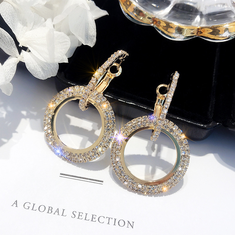 Fleepmart Hot Design Creative Jewelry High-grade Elegant Crystal Earrings Round Gold/silver Color Earrings For Woman Wedding Party