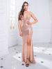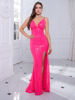 Fleepmart Hot Pink V Neck Pleated Padded Stretch Sequin Evening Night Party Dress High Split Backless Floor Length Gold Prom DressThere are no reviews yet