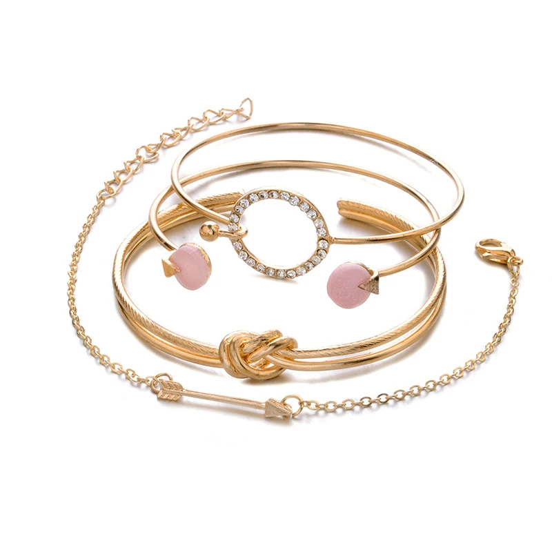 Fleepmart Hot Sale 4 Pcs/ Set Classic Arrow Knot Round Crystal Gem Multilayer Adjustable Open Bracelet Set Women Fashion Party