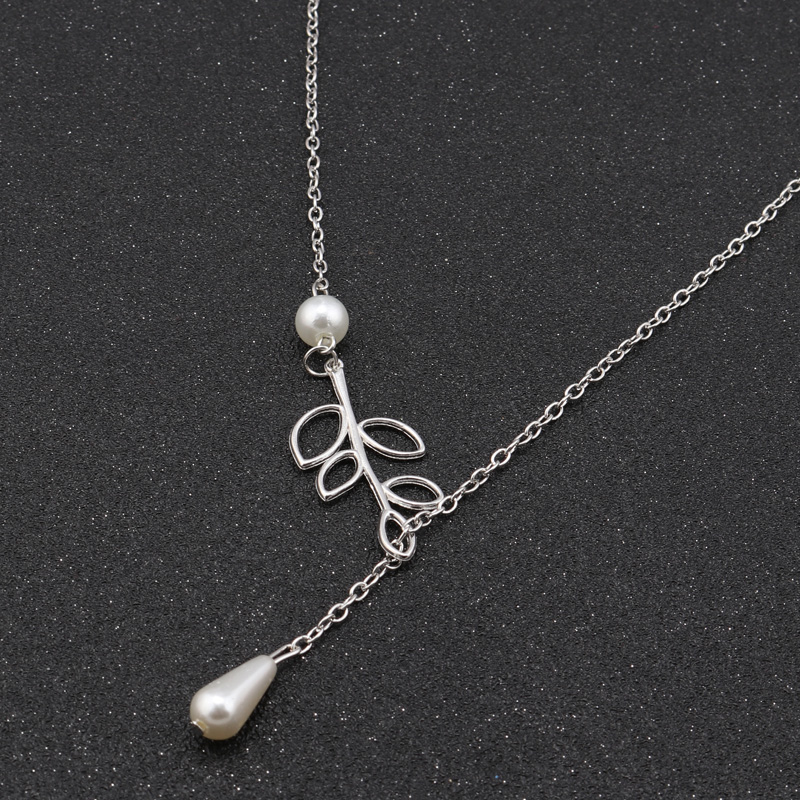 Fleepmart Hot Sale Silver Color Big Leaf Simulated Pearl Water Droplets Necklaces & Pendants for Women Jewelry Accessories