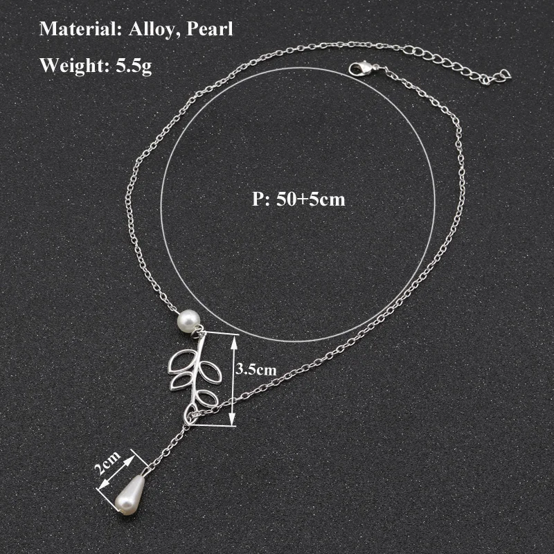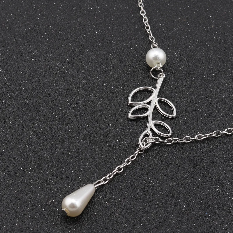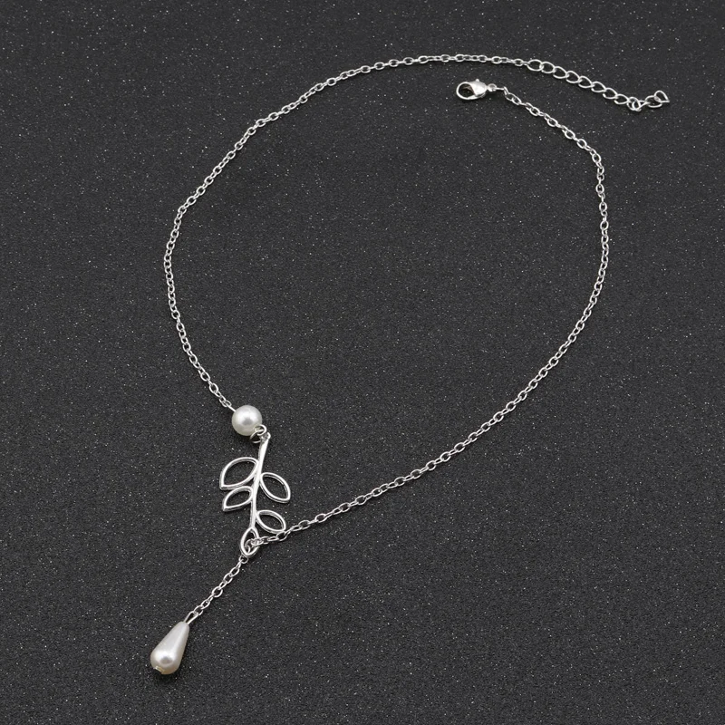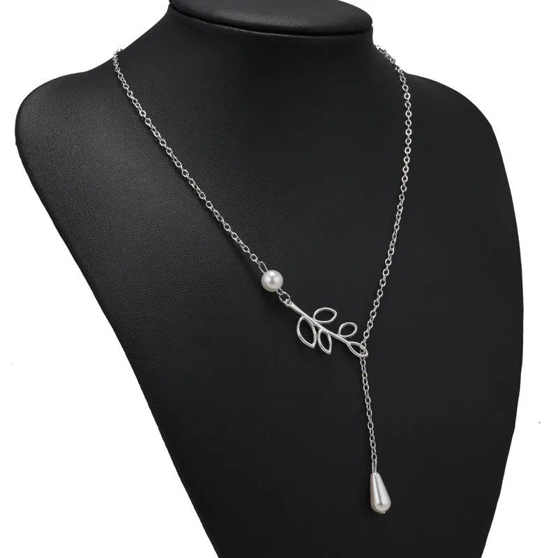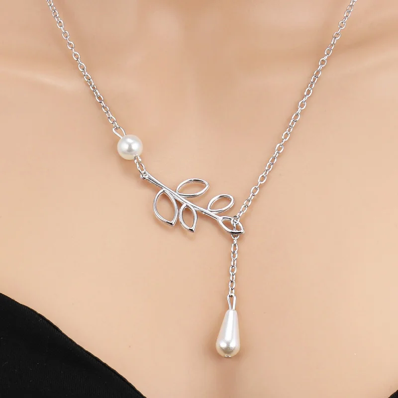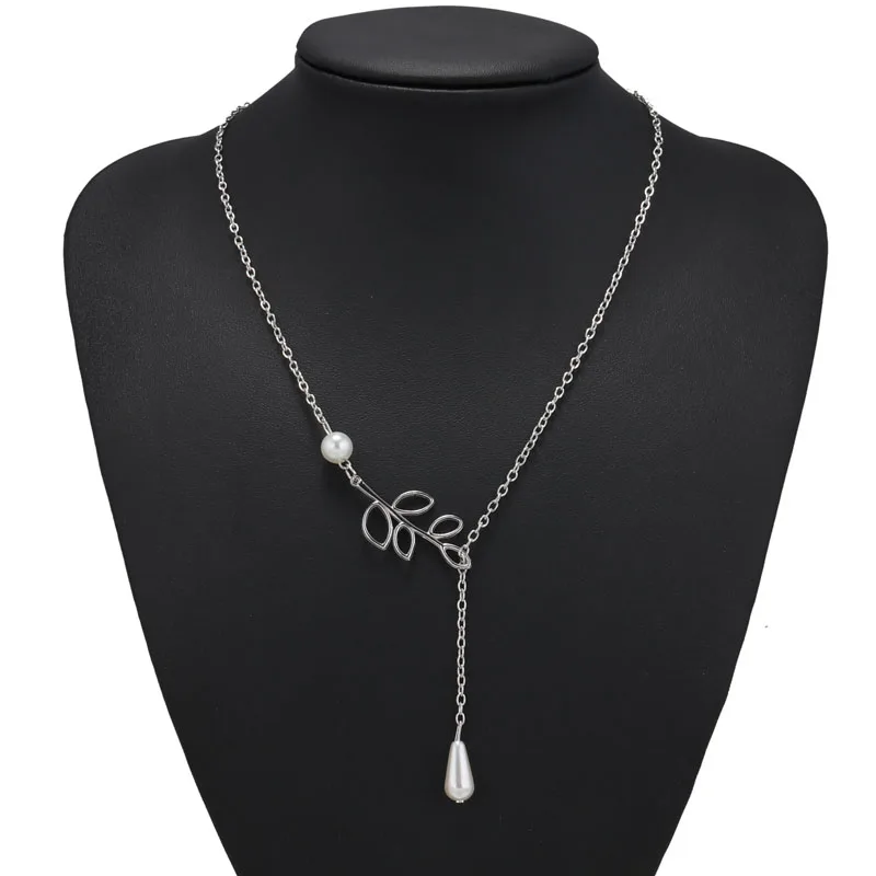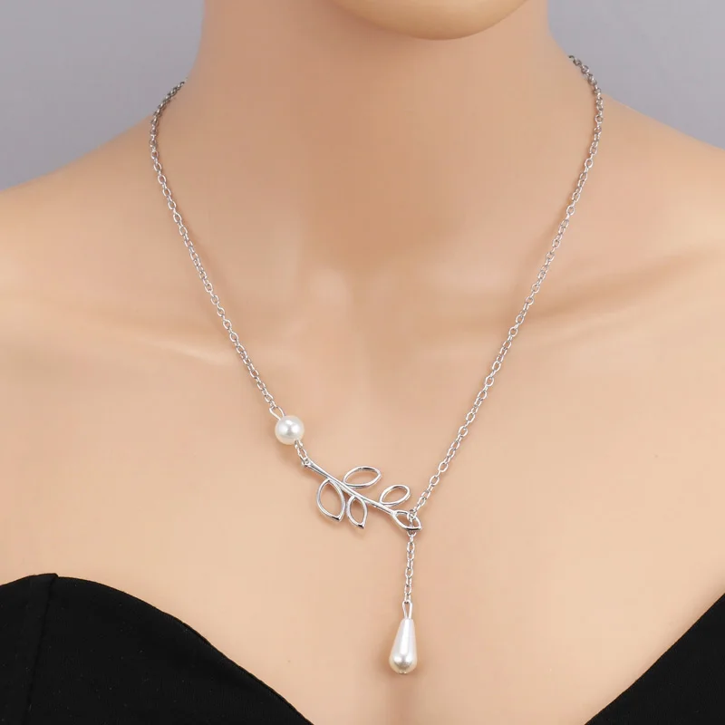 Fleepmart Hot Sale Silver Color Big Leaf Simulated Pearl Water Droplets Necklaces & Pendants for Women Jewelry Accessories