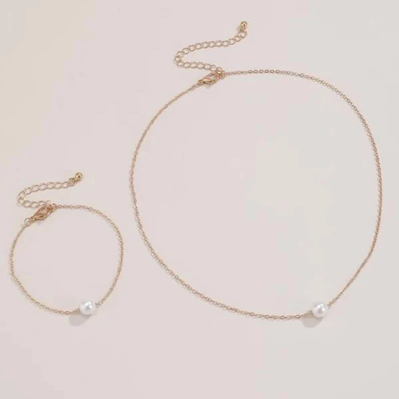 Fleepmart Hot White Pearl Jewelry Sets Necklace Bracelet Big Pearl Sets Unquie For Women Party Jewelry Christmas Gift S001