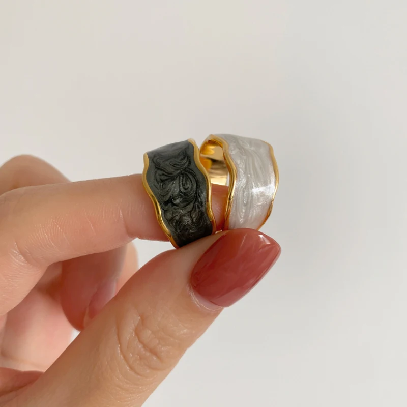 Fleepmart Ins Colorful Open Joint Ring for Women Dripping Oil Irregular Alloy Metal Neutral Ring Boho Jewelry Accessories Anillo