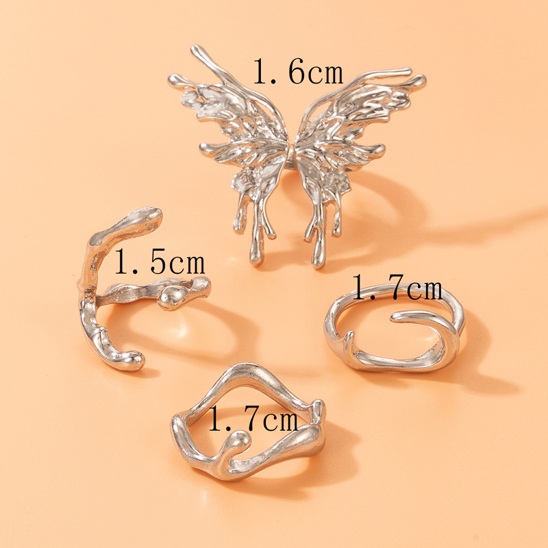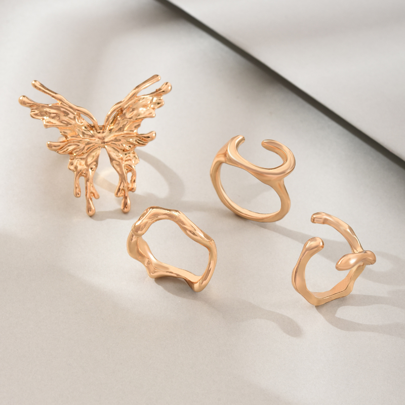 Fleepmart INS Trendy Big Butterfly Joint Ring Sets for Women Hollow Geoemtry Alloy Metal Gold Color Party Jewelry Anillo