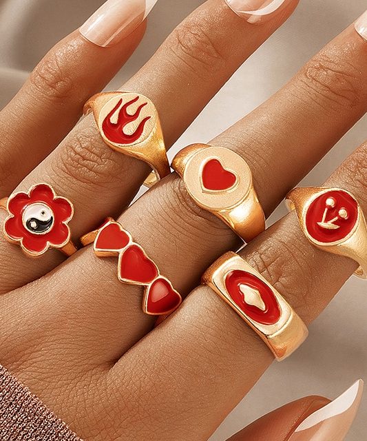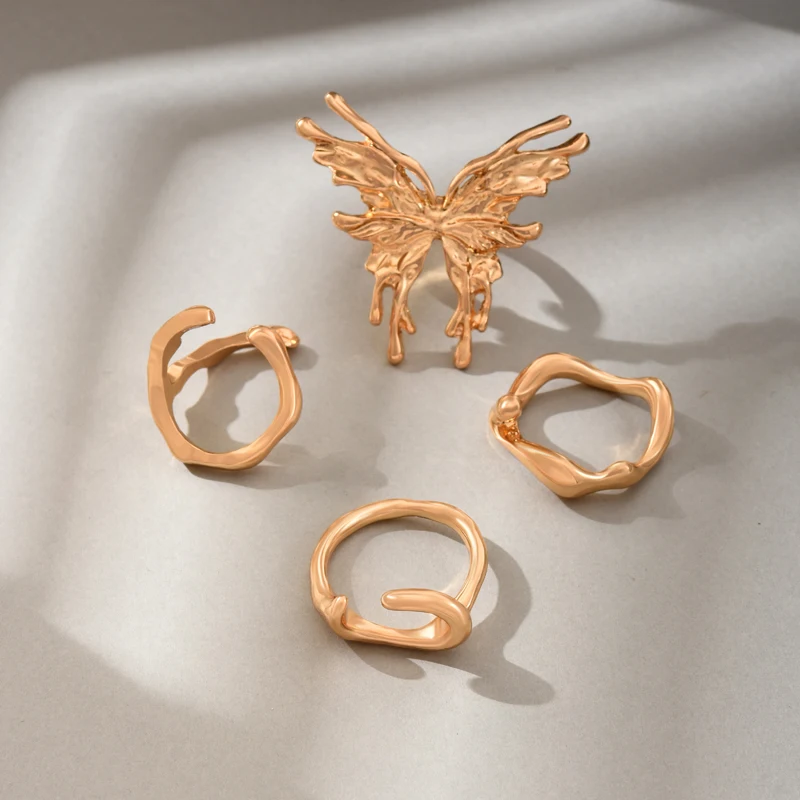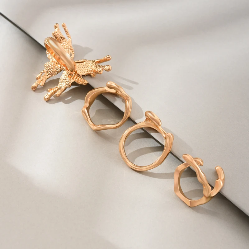 Fleepmart INS Trendy Big Butterfly Joint Ring Sets for Women Hollow Geoemtry Alloy Metal Gold Color Party Jewelry Anillo