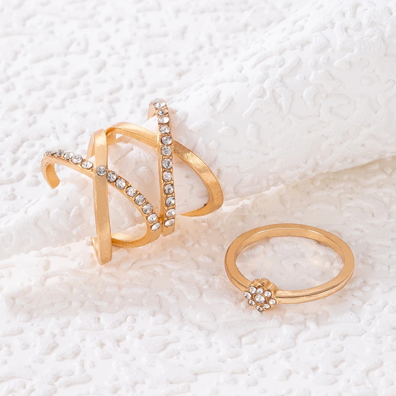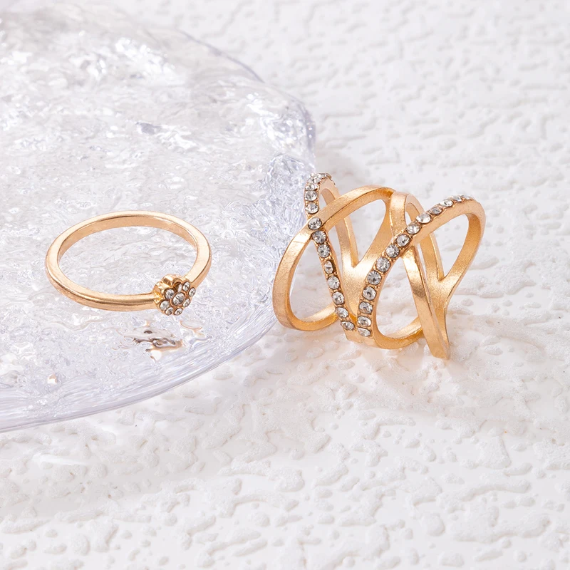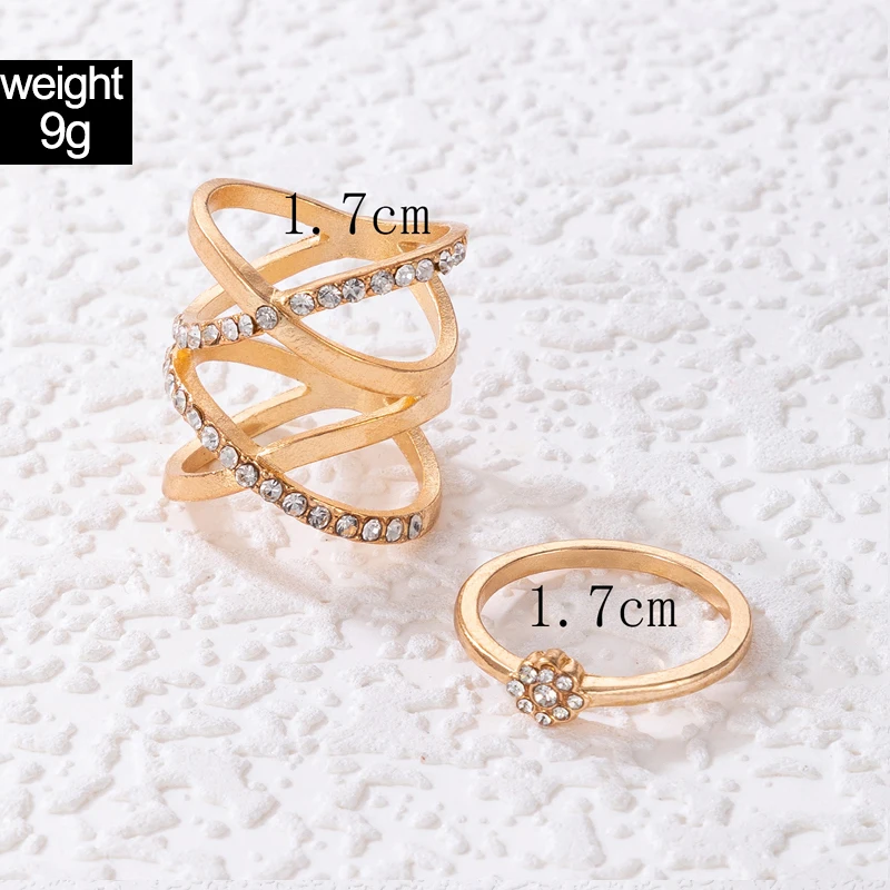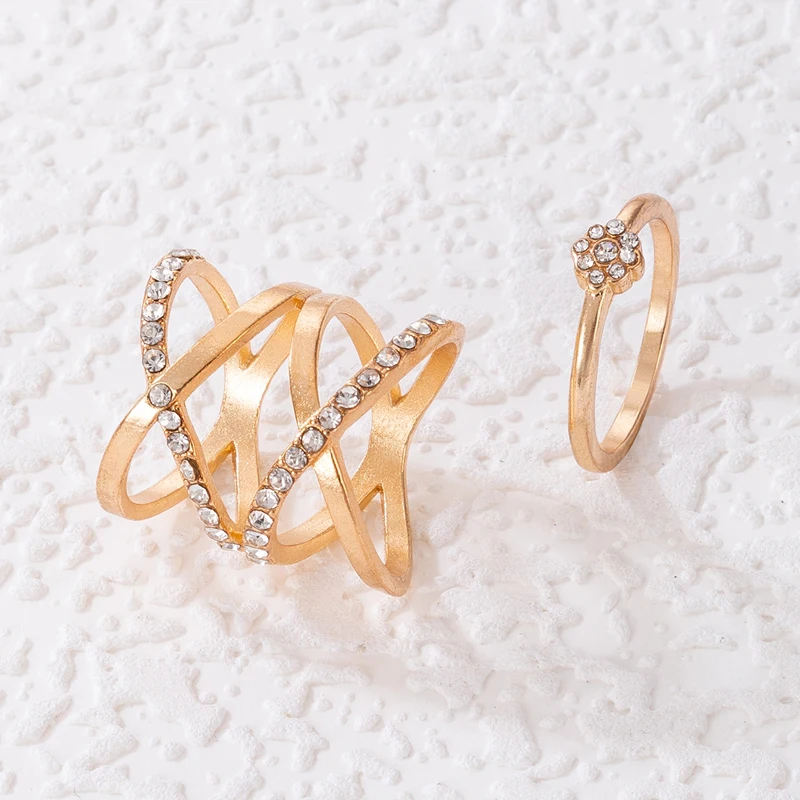 Fleepmart INS Trendy Flowers Bow-knot Joint Ring Sets Hollow Geometry Alloy Metal Rhinestone Adjustable Jewelry Women Men Anillo