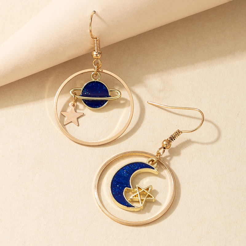 Fleepmart INS Trendy Moon Drop Earrings Charms Blue Earth Star Hollow Round Geoemtry Dangle Earring for Women Jewelry серьги
