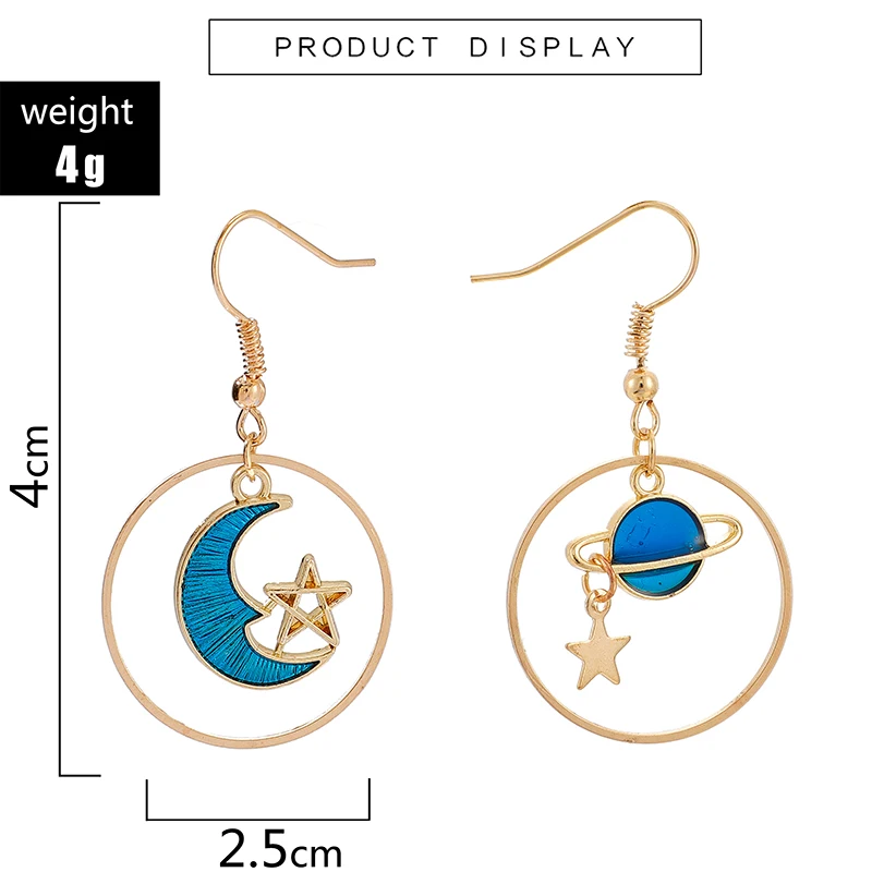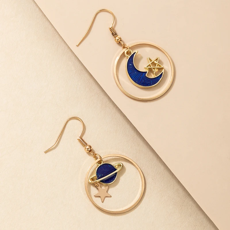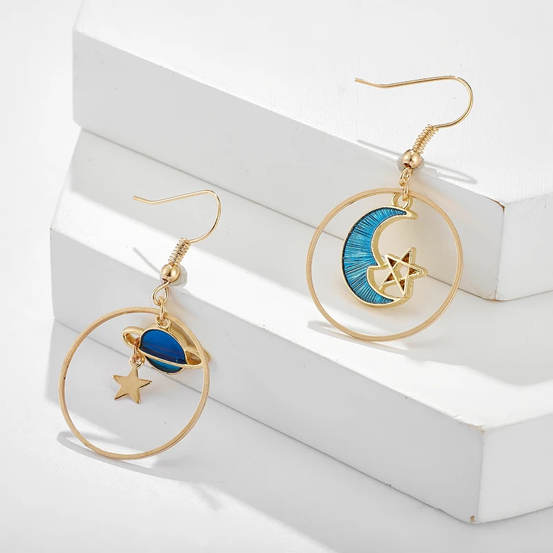 Fleepmart INS Trendy Moon Drop Earrings Charms Blue Earth Star Hollow Round Geoemtry Dangle Earring for Women Jewelry серьги