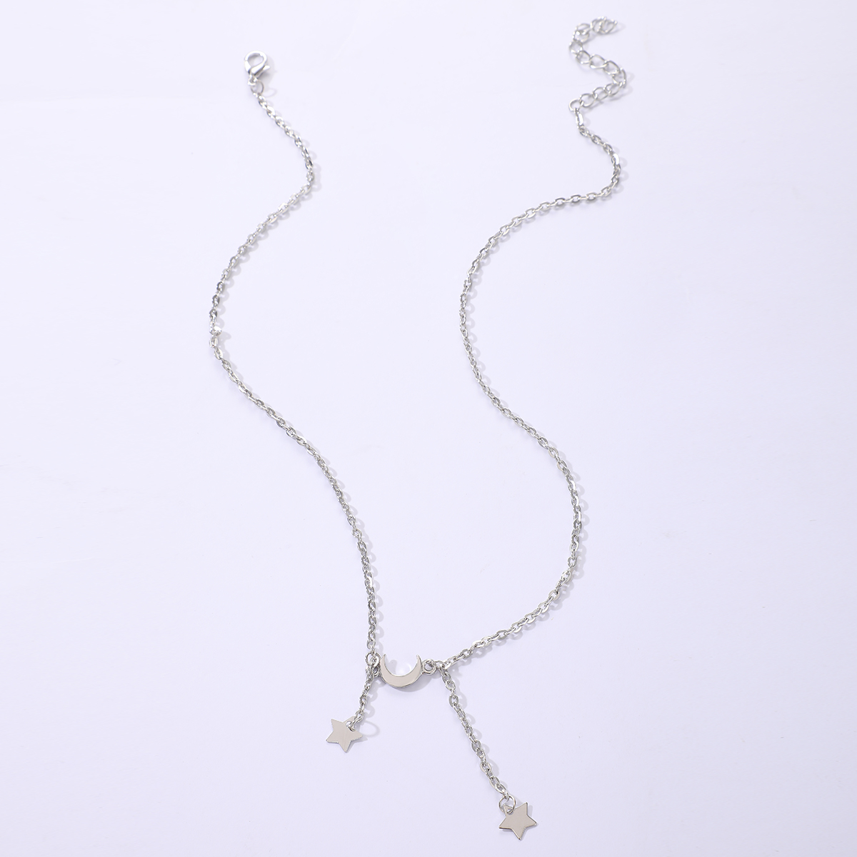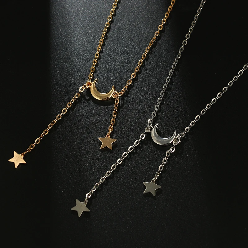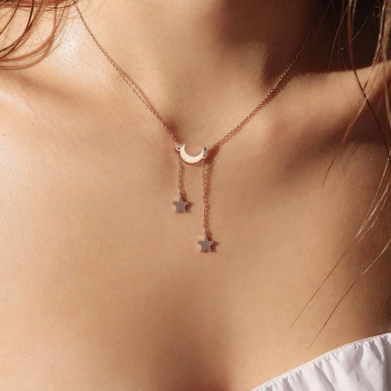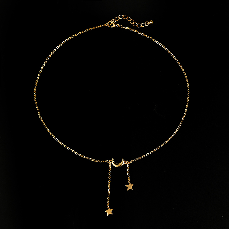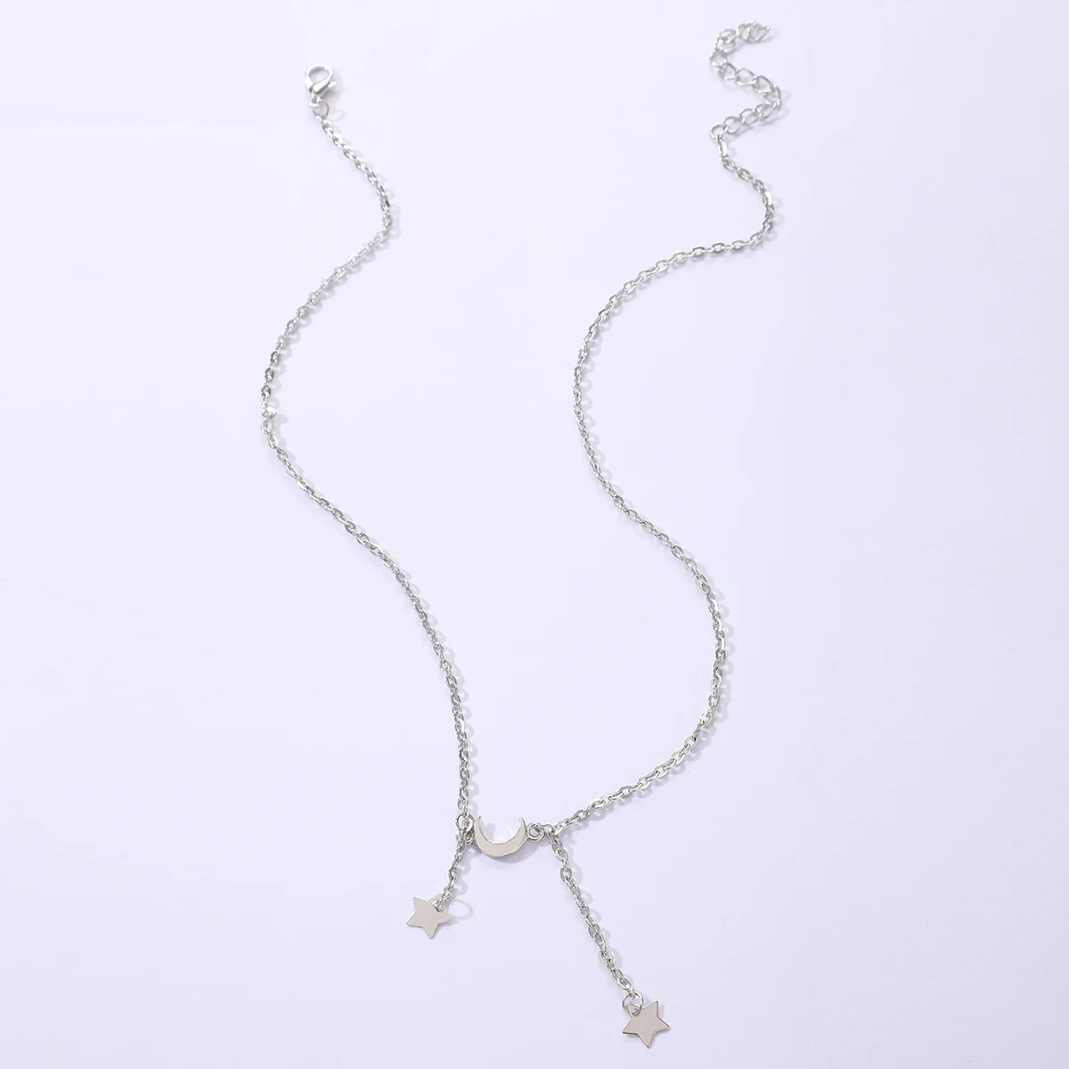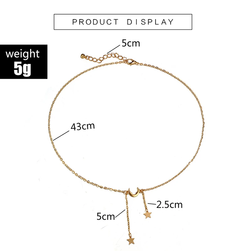 Fleepmart INS Trendy Moon Star Pendant Necklace for Women Gold Alloy Metal Clavicle Chain Choker Adjustable Jewelry Collar