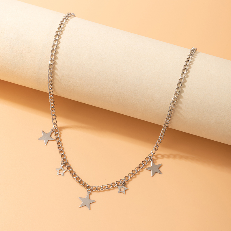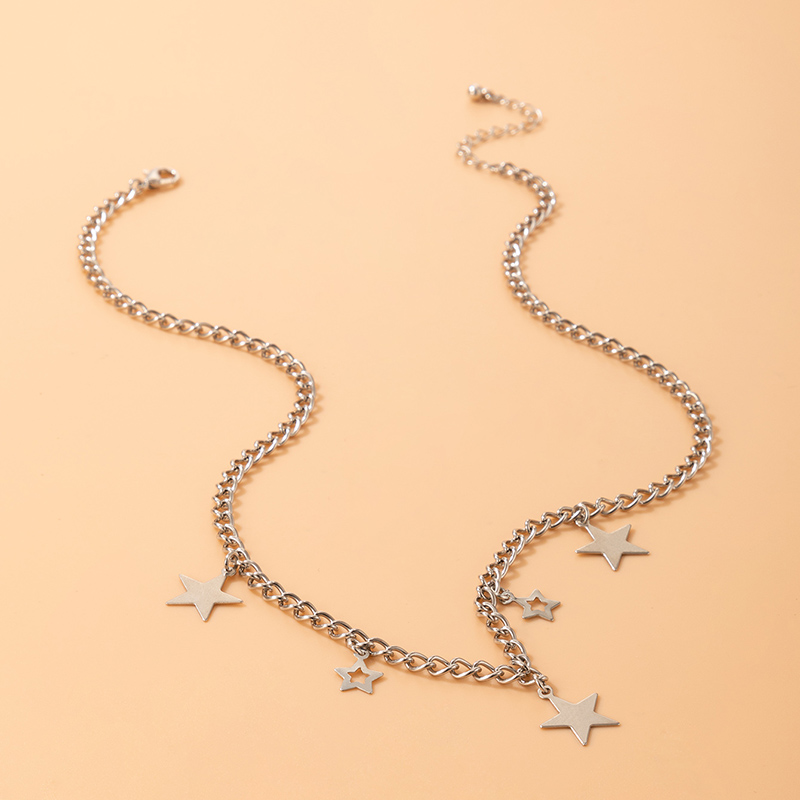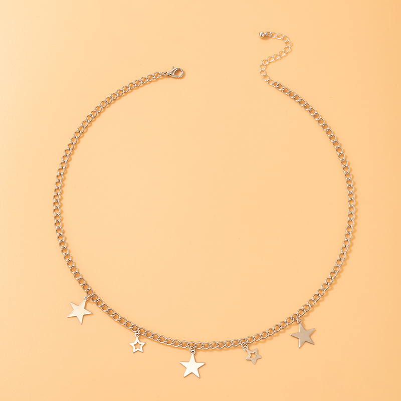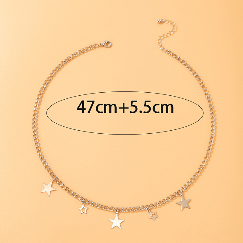 Fleepmart INS Trendy Star Tassel Clavicle Chain Choker Neckalce for Women Silver Color Alloy Metal Adjustable Jewelry Collar