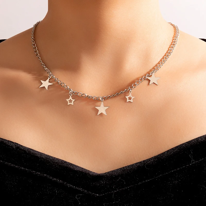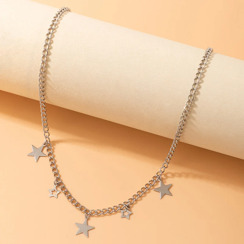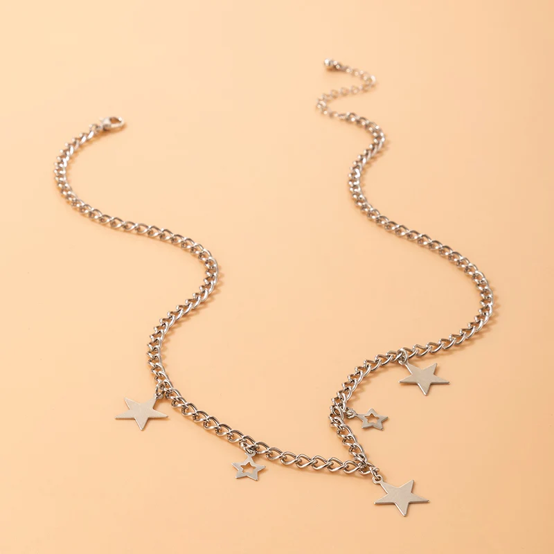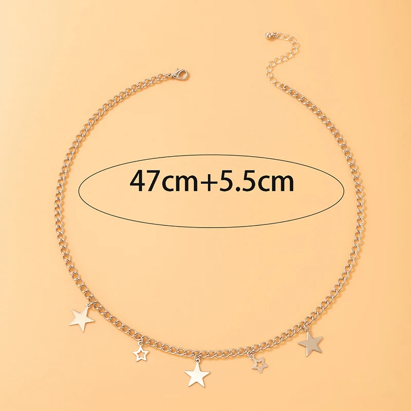 Fleepmart INS Trendy Star Tassel Clavicle Chain Choker Neckalce for Women Silver Color Alloy Metal Adjustable Jewelry Collar