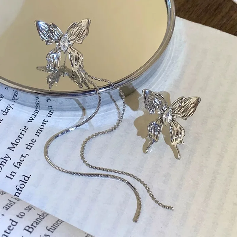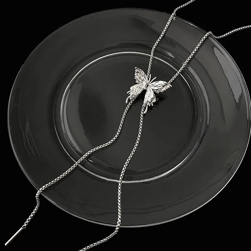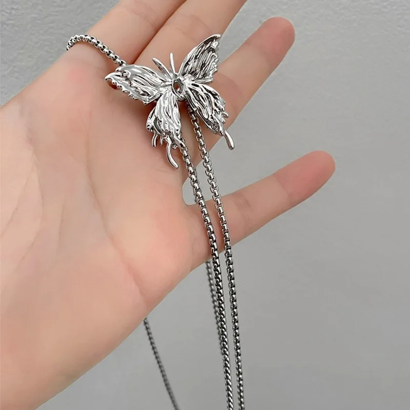 Fleepmart Irregular Liquid Metal Butterfly Necklace Silver Color Butterfly Pendant Adjustable stainless steel Chain Punk Hiphop Jewelry