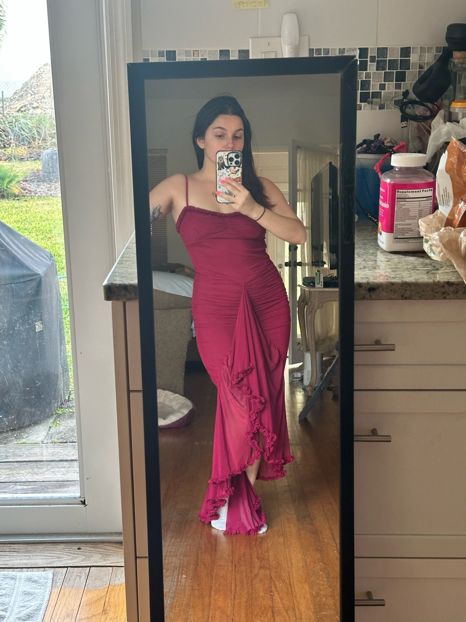 It’s a beautiful dress! The measurements are perfect. I ordered S I’m 5’2 and weigh 125 lbs.