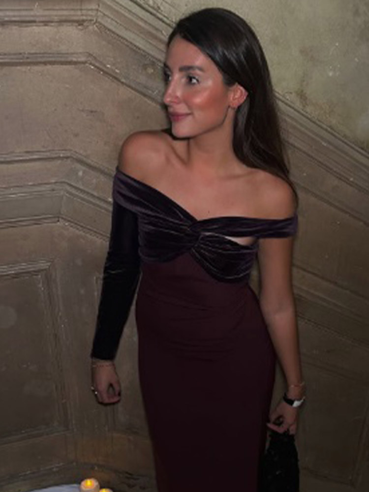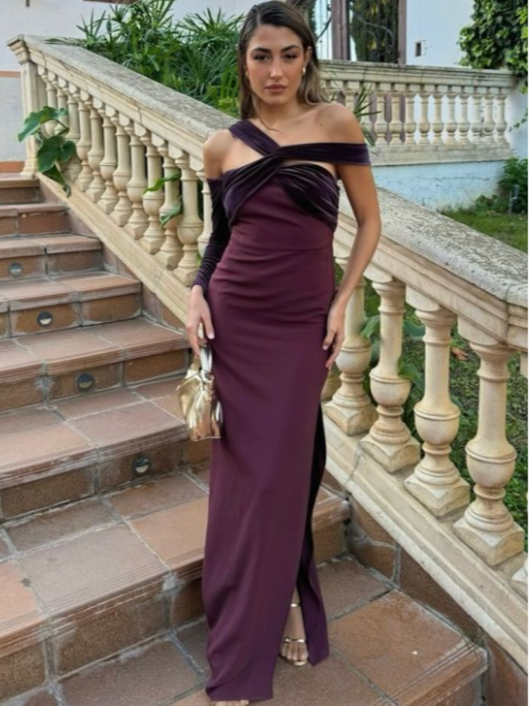 Fleepmart Irregular Velvet Cross Collar Long Women Sexy Off Shoulder Single Sleeves Split Elegant Party Gowns