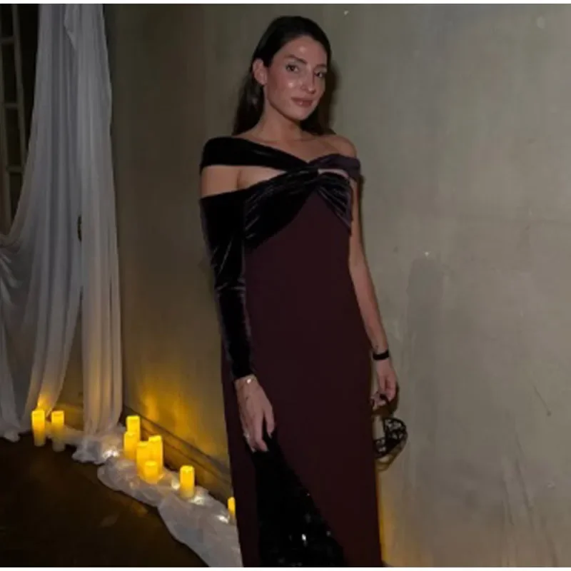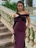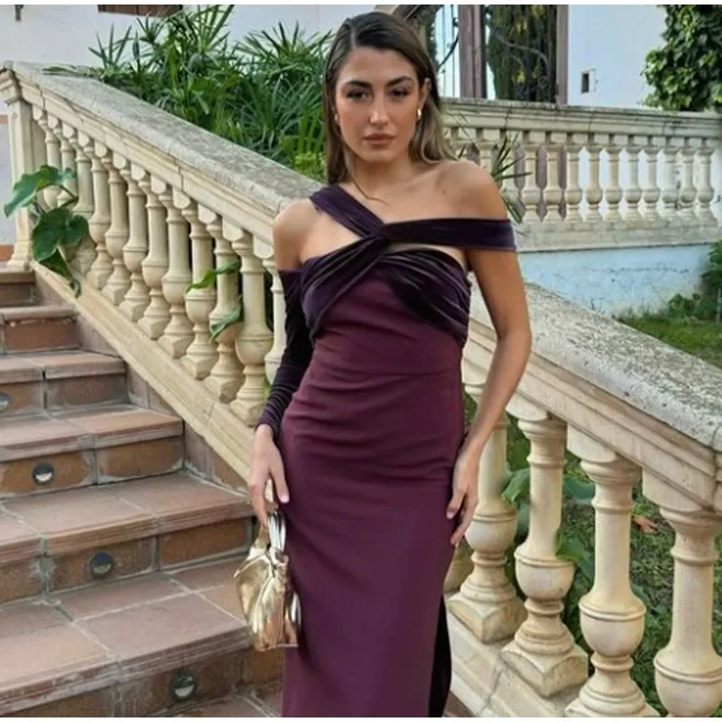 Fleepmart Irregular Velvet Cross Collar Long Women Sexy Off Shoulder Single Sleeves Split Elegant Party Gowns
