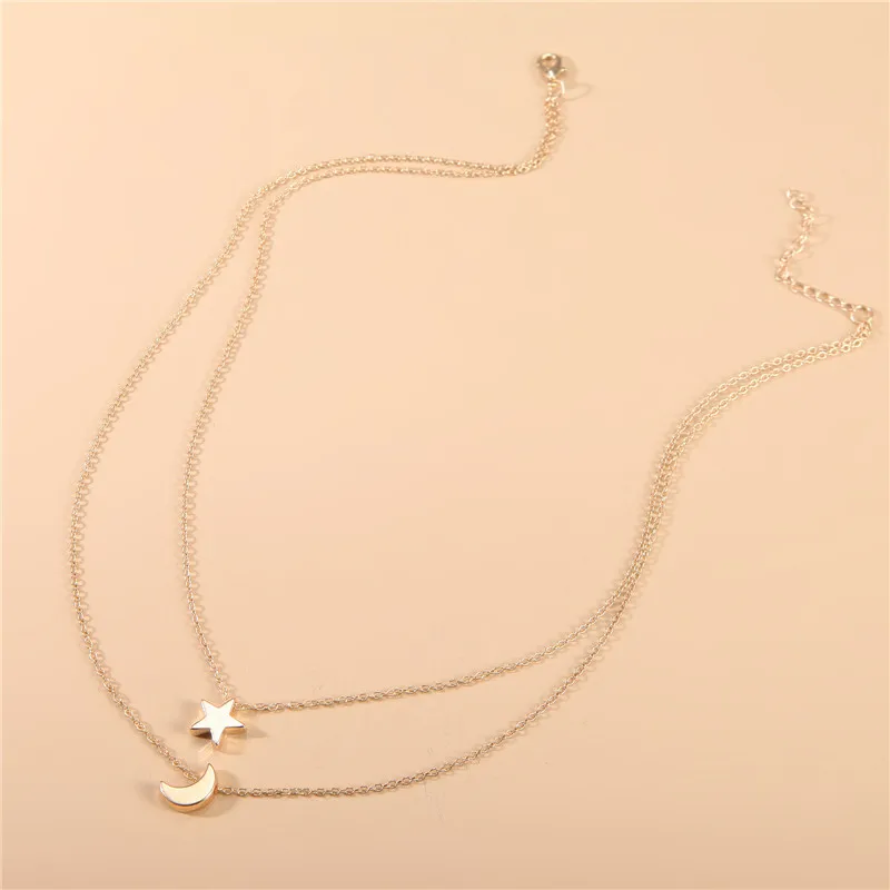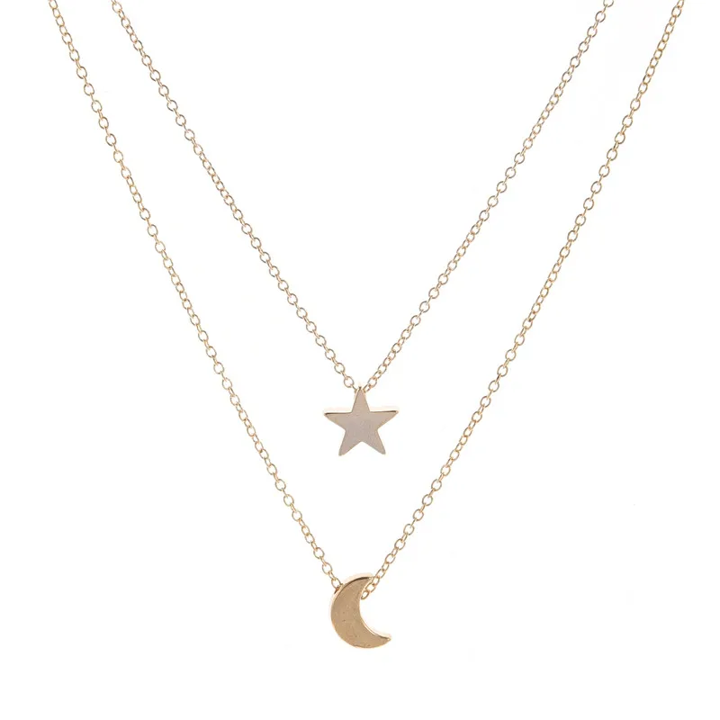 Fleepmart Jewelry Star Moon 2 layer Choker Necklace Clavicle Chains Charm Womens Fashion Jewelry Collar Maxi Necklace For Women