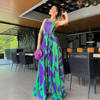 Fleepmart Jumpsuits Women Print Round Neck Sleeveless Casual Loose Overalls Wide Leg Long Pants Lace Up Rompers