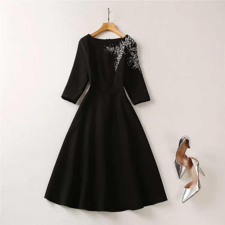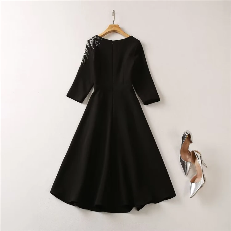 Fleepmart Kate Princess Runway Spring Autumn Women’s New Designer High Quality Casual Party Celebrity Elegant Beading Diamond Black Dress Fleepmart Kate Princess Runway Spring Autumn Women’s New Designer High Quality Casual Party Celebrity Elegant Beading Diamond Black Dress