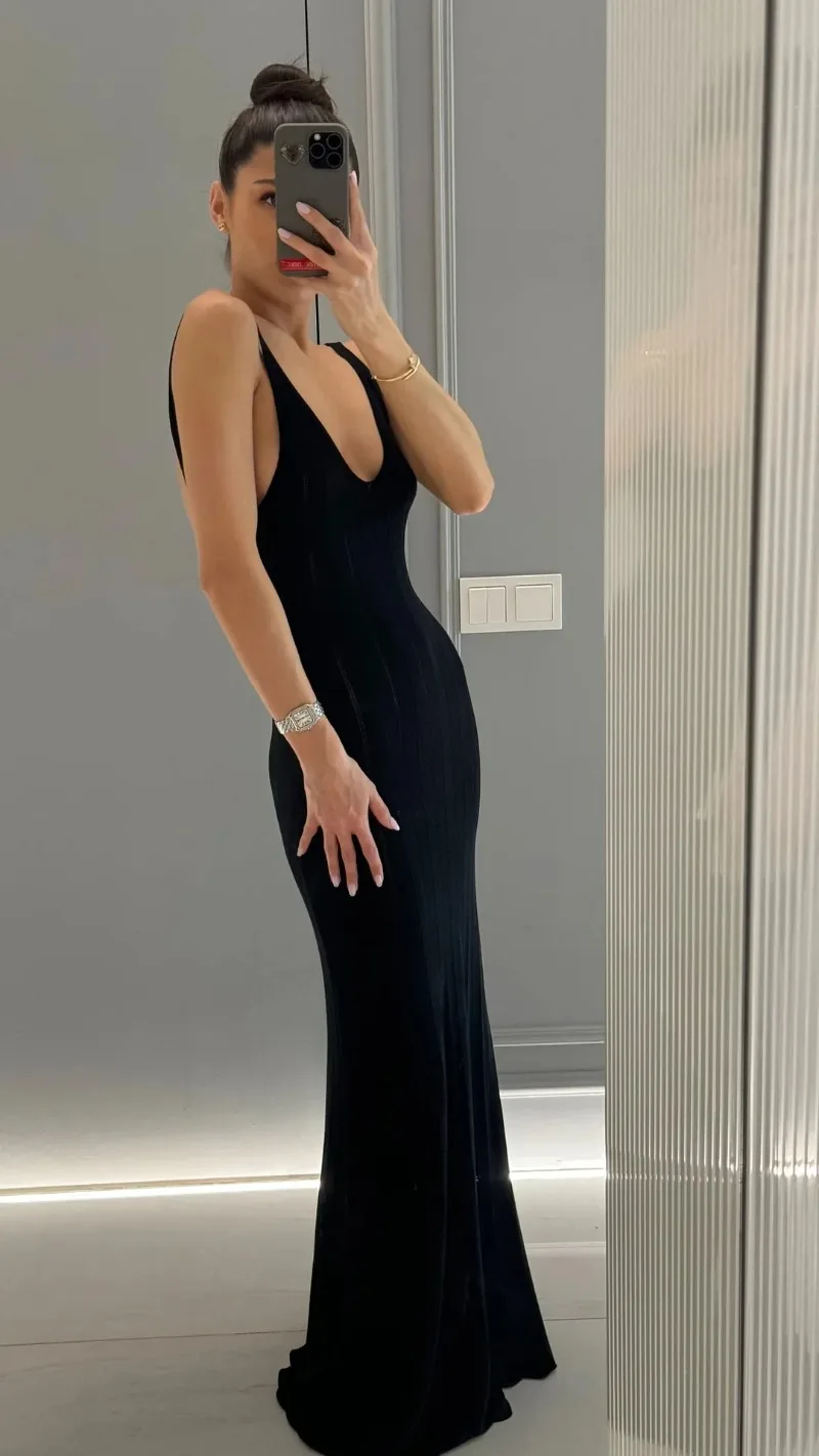 Fleepmart Knit Backless Women V Neck Slim Sleeveless Suspender Maxi Vacation Sexy Beach Elegant Long Dress