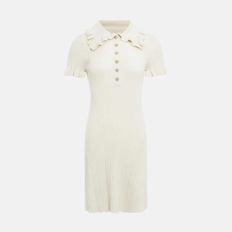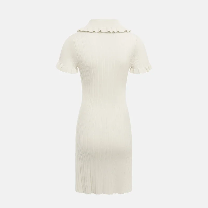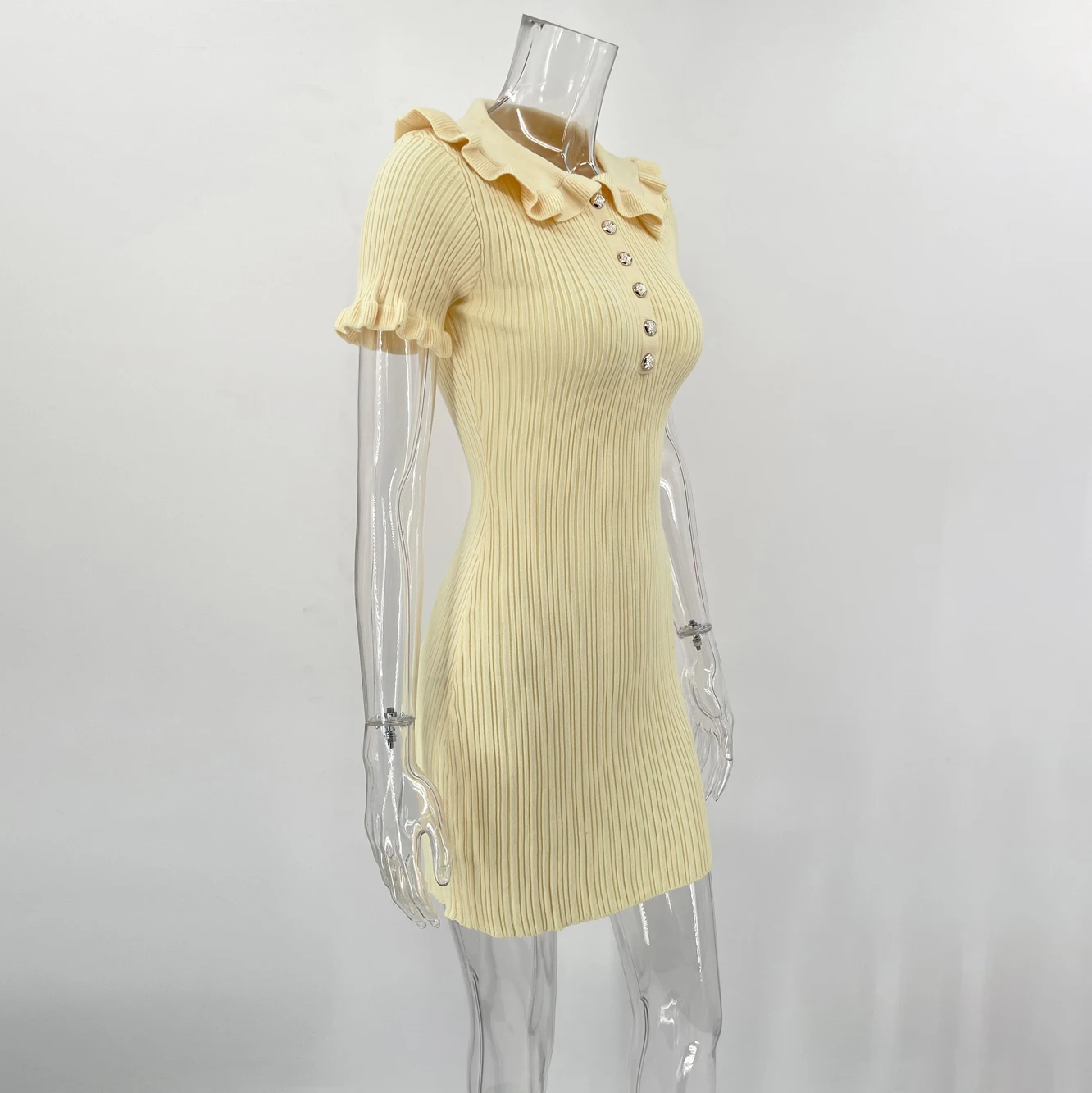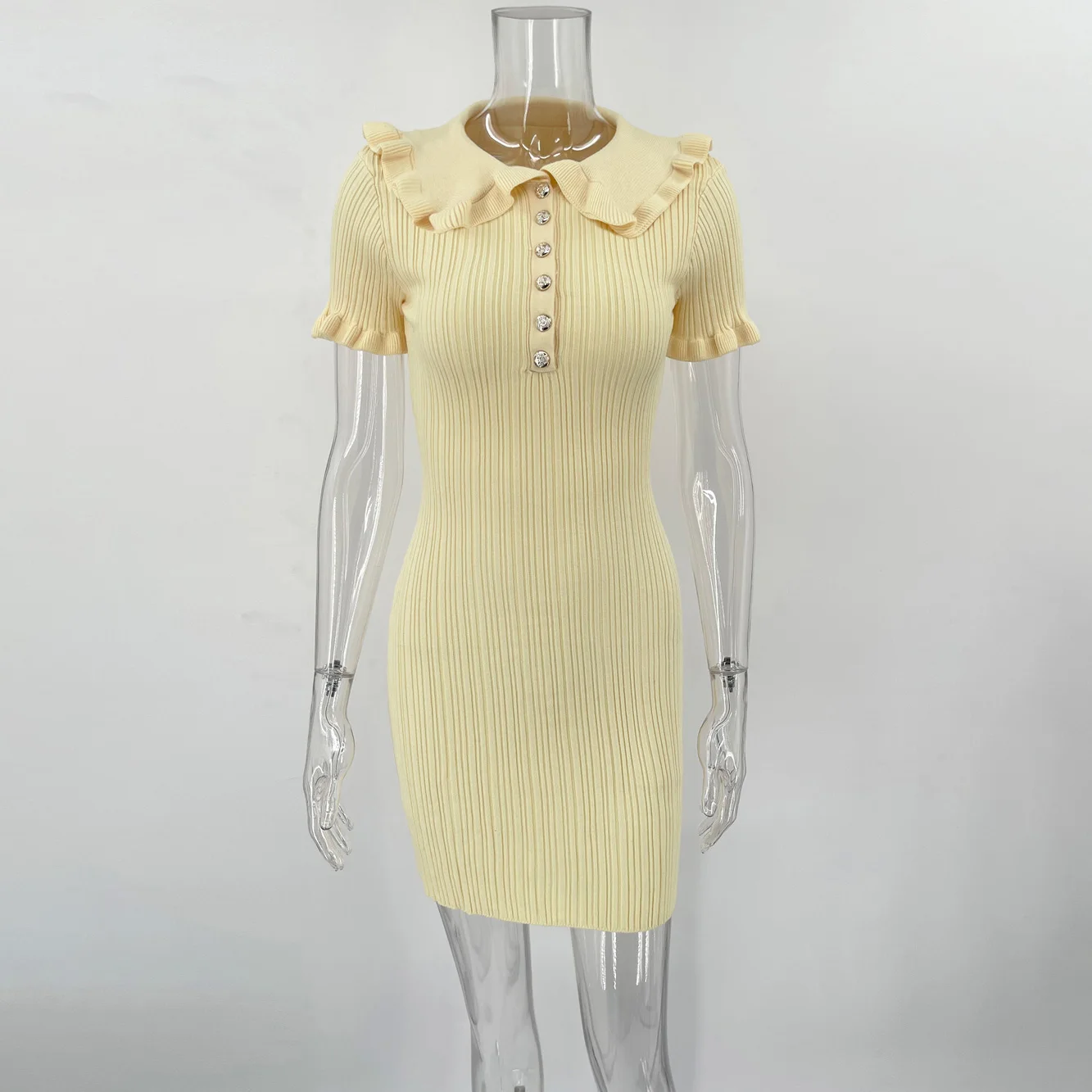 Fleepmart Knitted Elegant Ruffle Mini Women Retro Sexy Short Sleeve Slim Fit Mini Dress