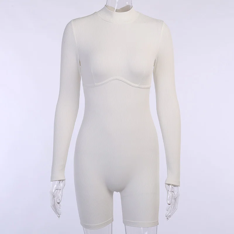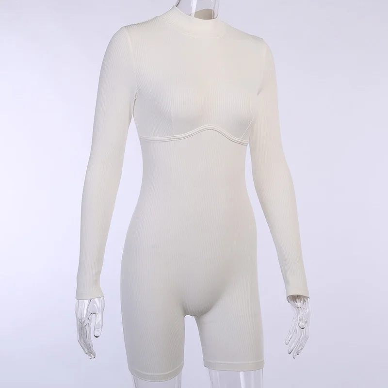 Fleepmart Knitted Long Sleeve Bodycon Sexy Rompers Women Autumn Winter Slim Solid Playsuits Ladies High Waist Jumpsuit Shorts