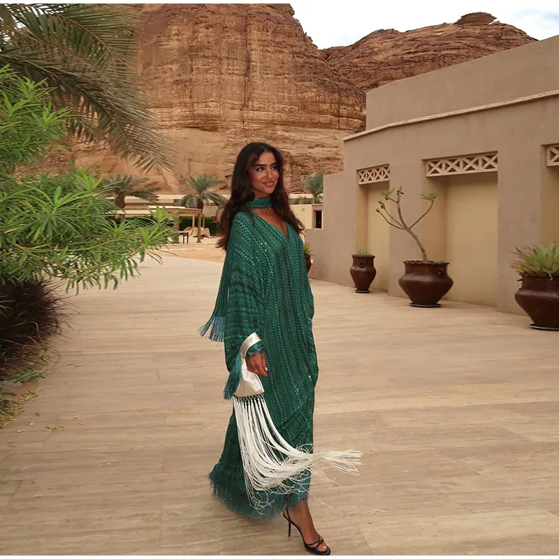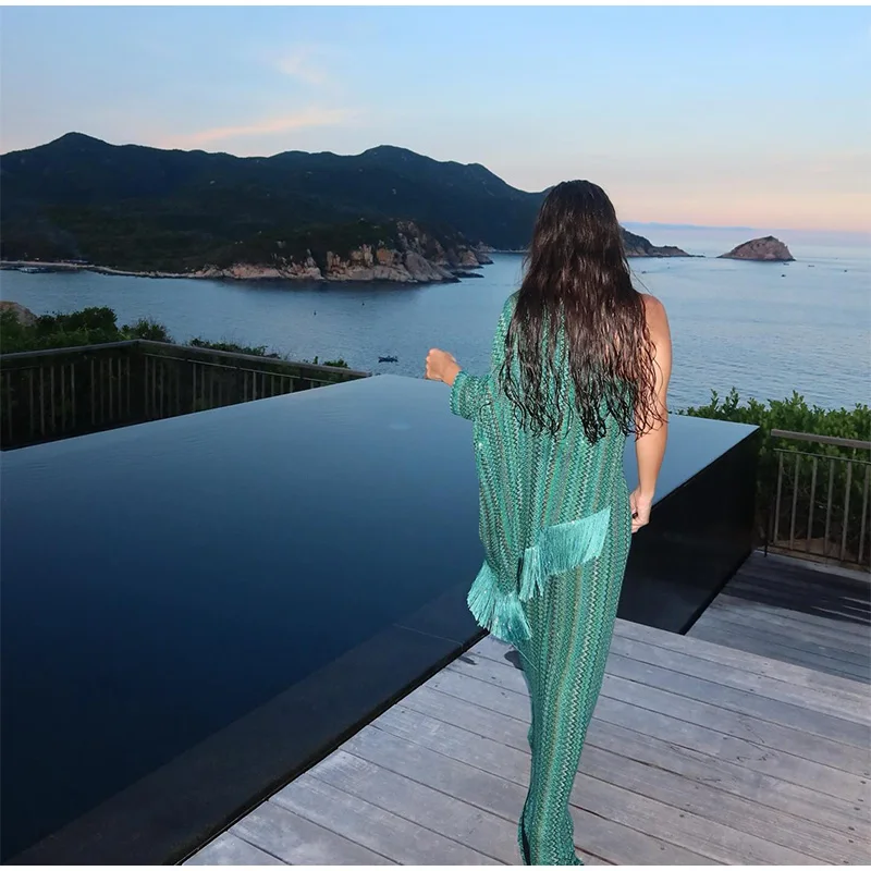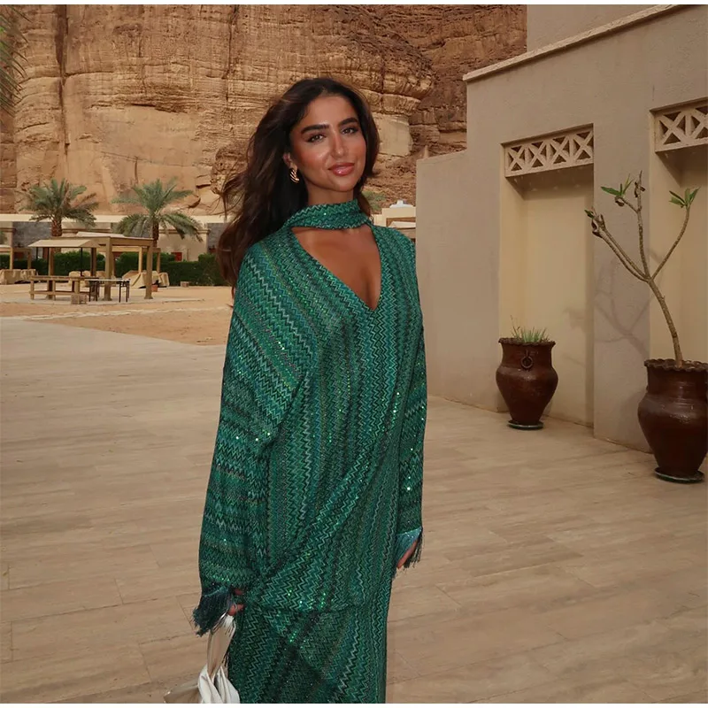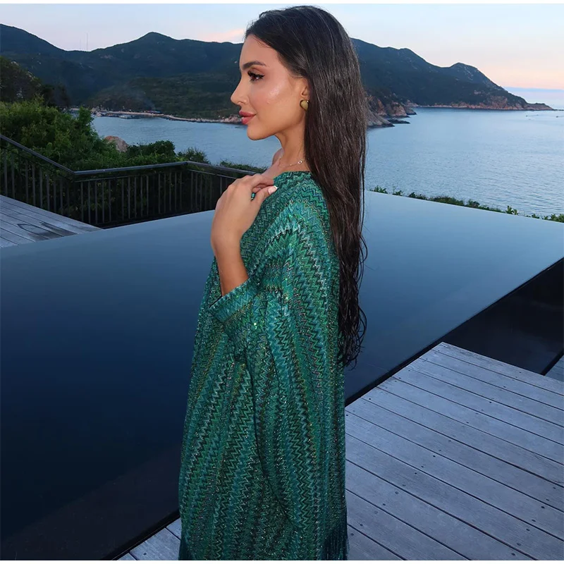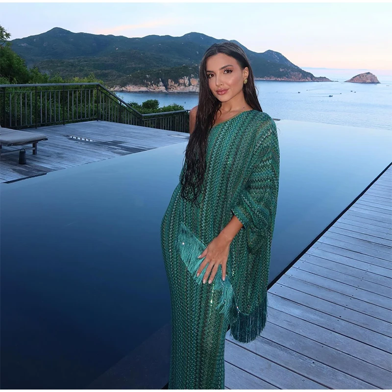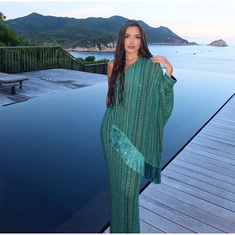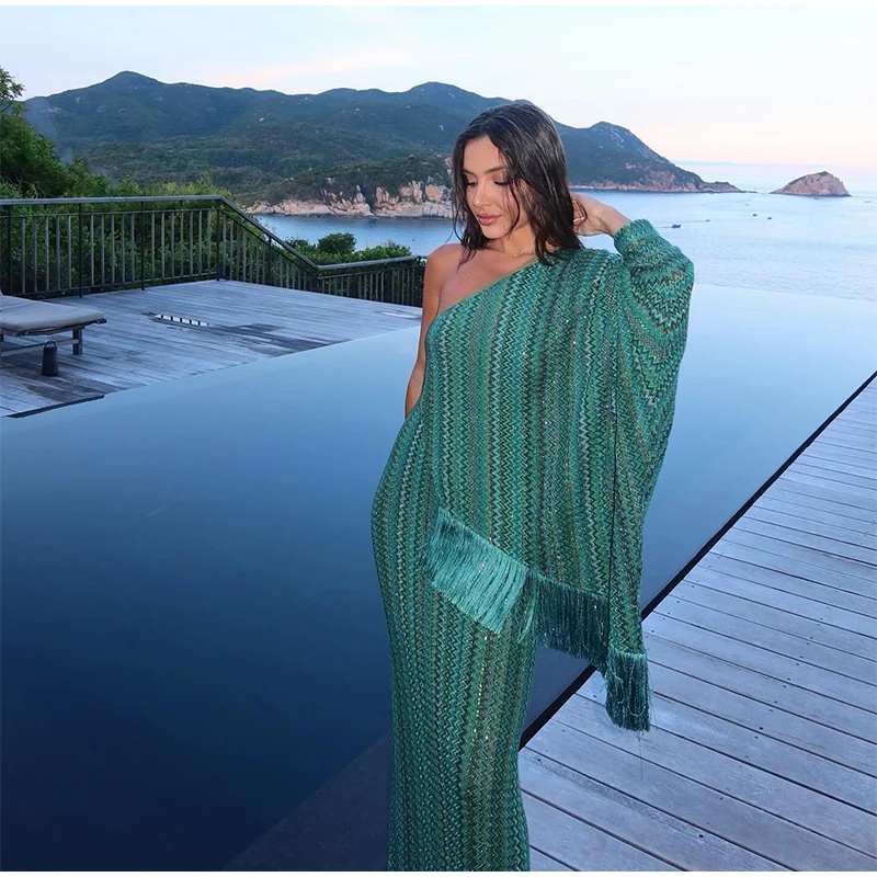 Fleepmart Knitted Oversize Long Dress Women One-shoulder Sleeve Scarf Long Sleeve Evening Dresses Female 2025 Summer Beach Robes