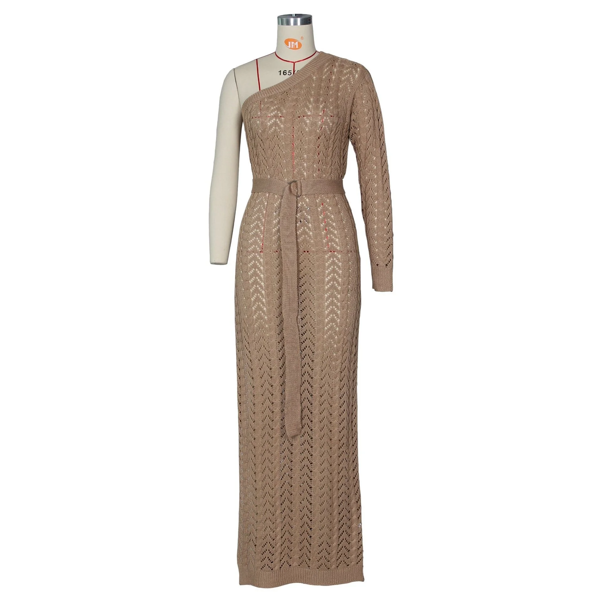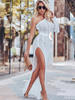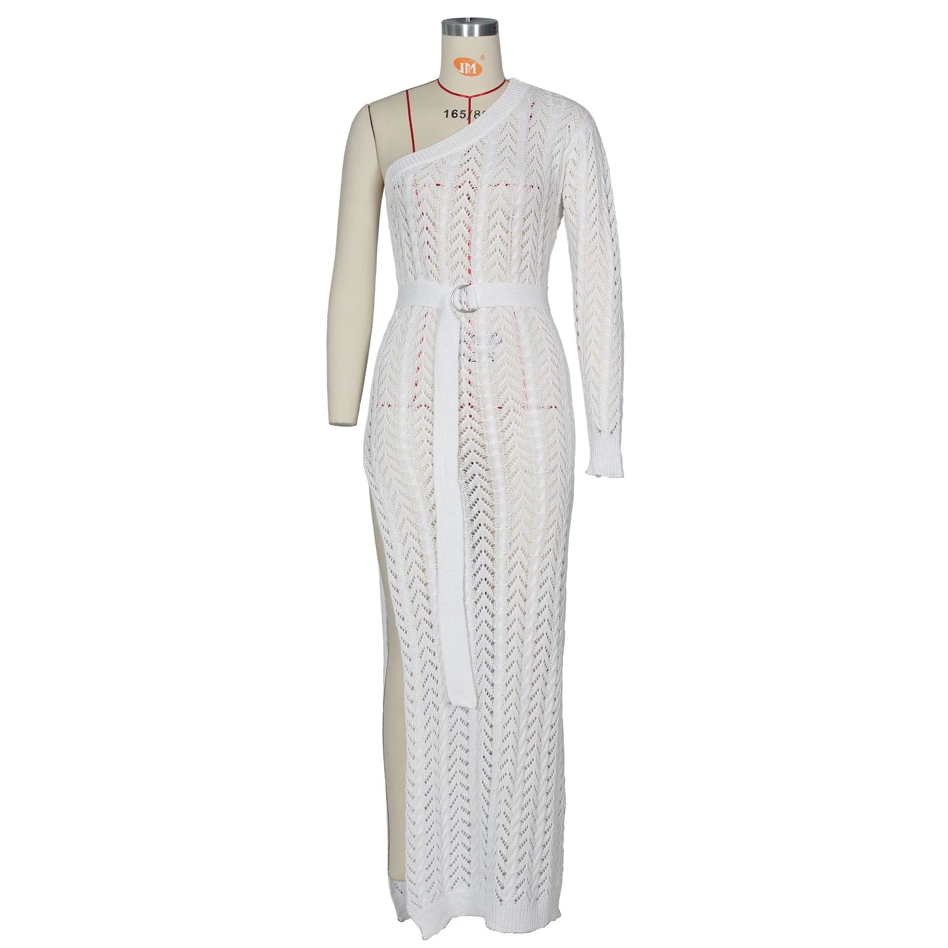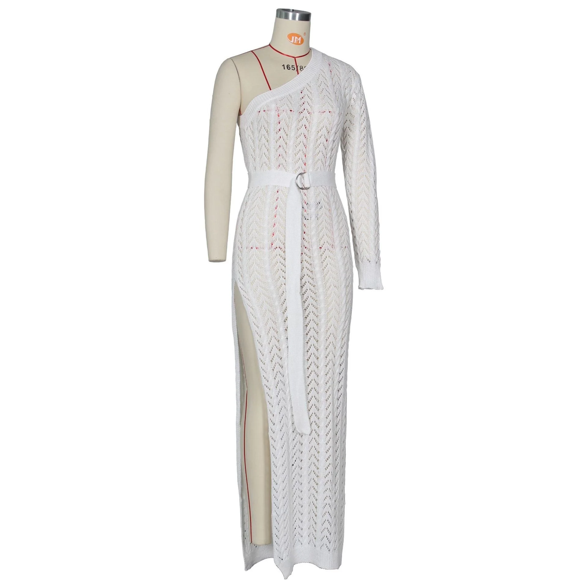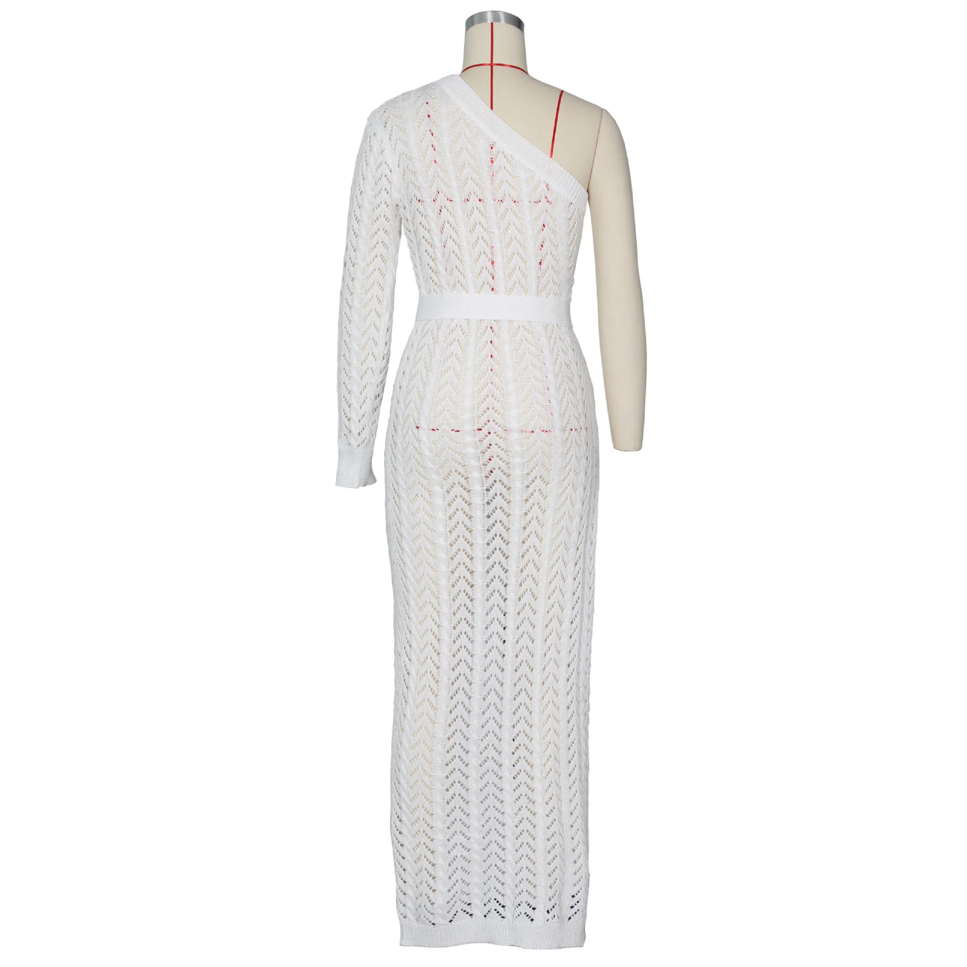 Fleepmart Knitted Summer Dress One Shoulder Elastic White Long Beach Dress Woman Side Split Sexy Chic Party Club Vestido 2023
