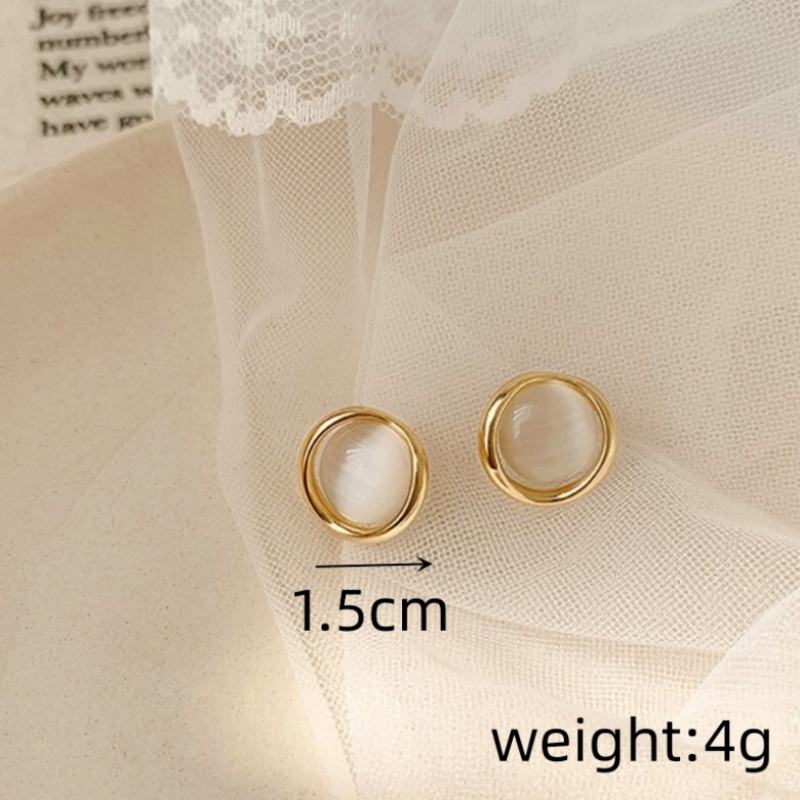 Fleepmart Korean Design Opal Round Stud Earring Women Geometry Jewelry Christmas Girlfriend Earring
