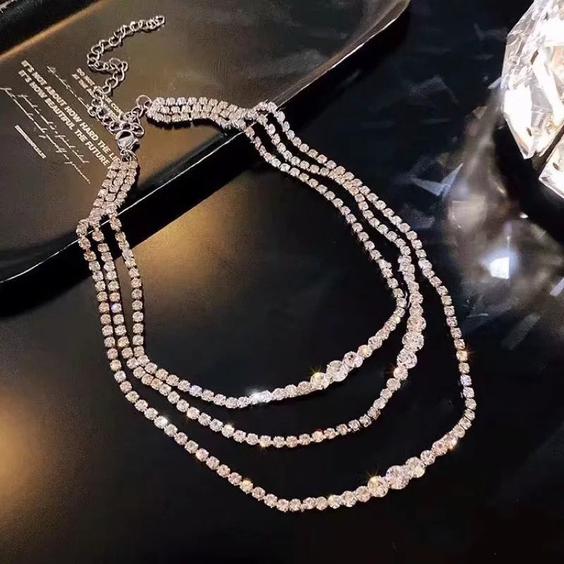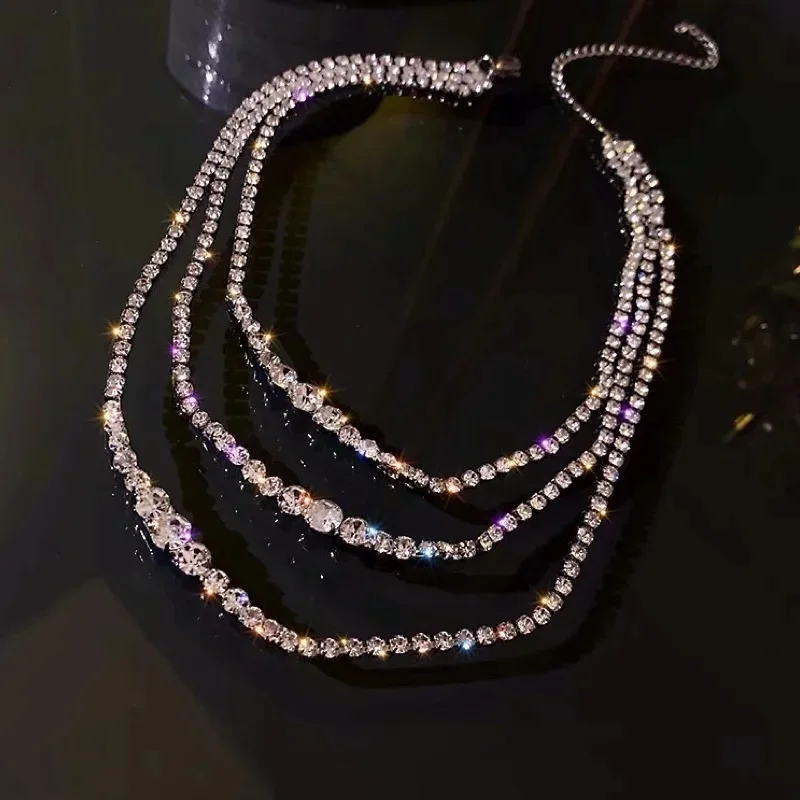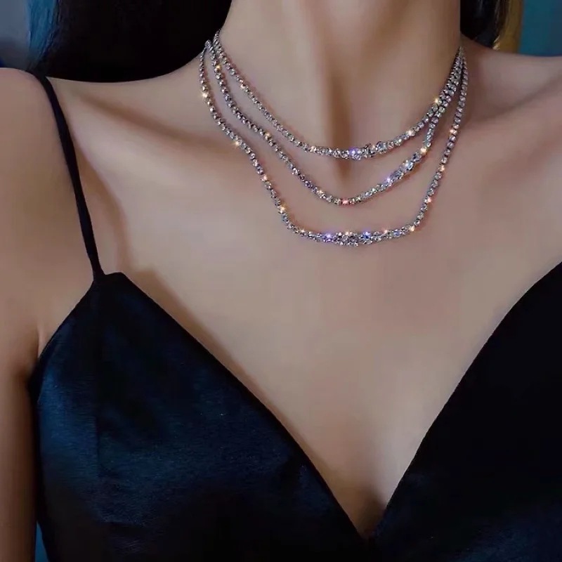 Fleepmart Korean Fashion Shining Full Rhinestone Choker Necklaces For Women Geometric Simple Luxury Crystal Necklaces Statement Jewelry