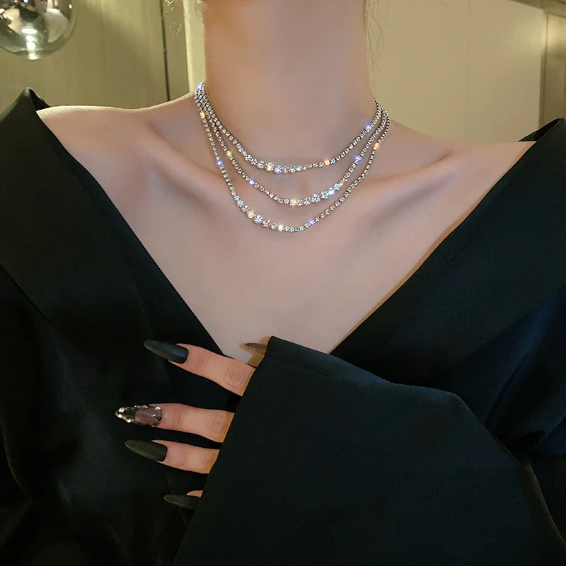 Fleepmart Korean Fashion Shining Full Rhinestone Choker Necklaces For Women Geometric Simple Luxury Crystal Necklaces Statement Jewelry